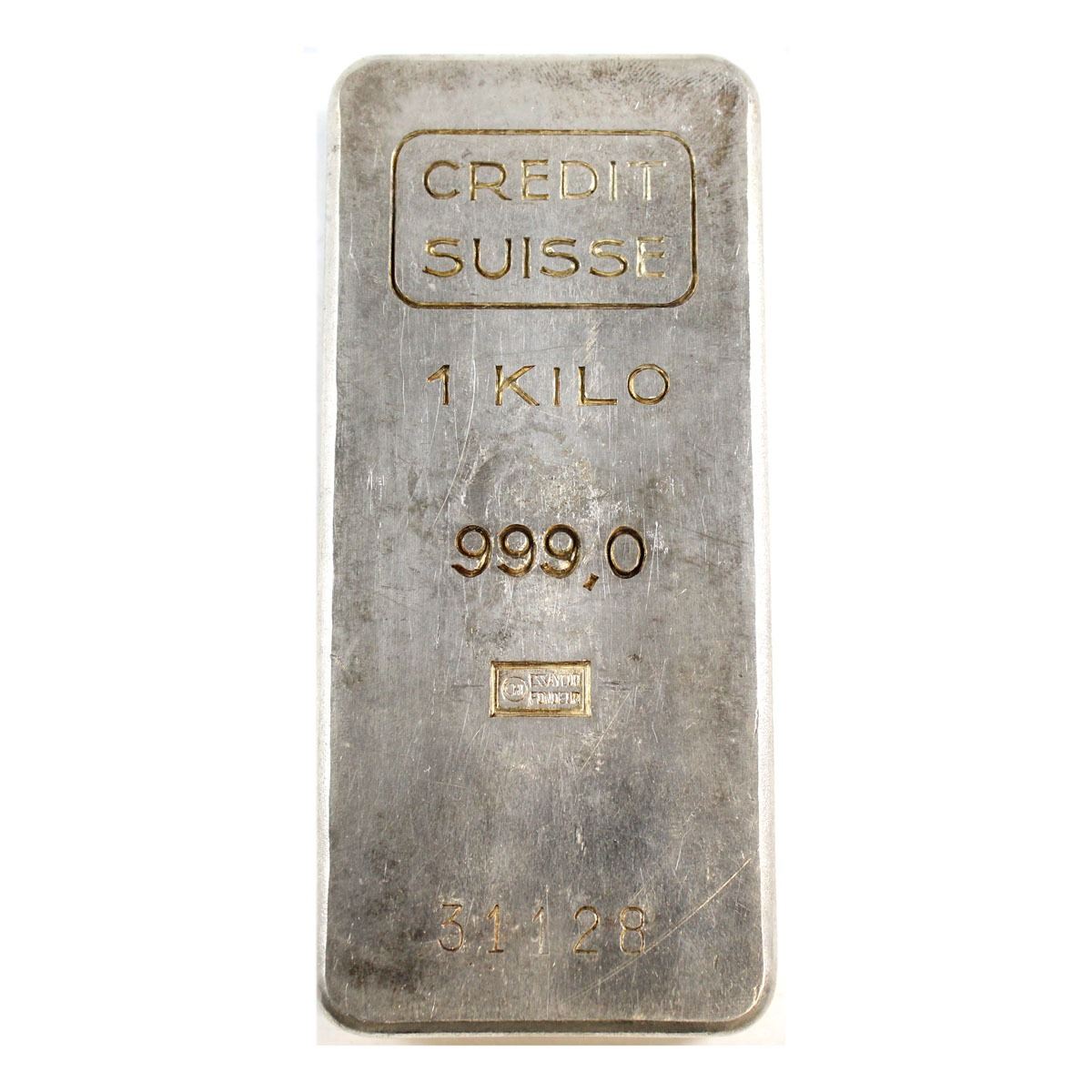 Vintage Credit Suisse 1 Kilo Fine Silver Bar (TAX Exempt). Serial # 31128 - Consecutive with Lot 1707