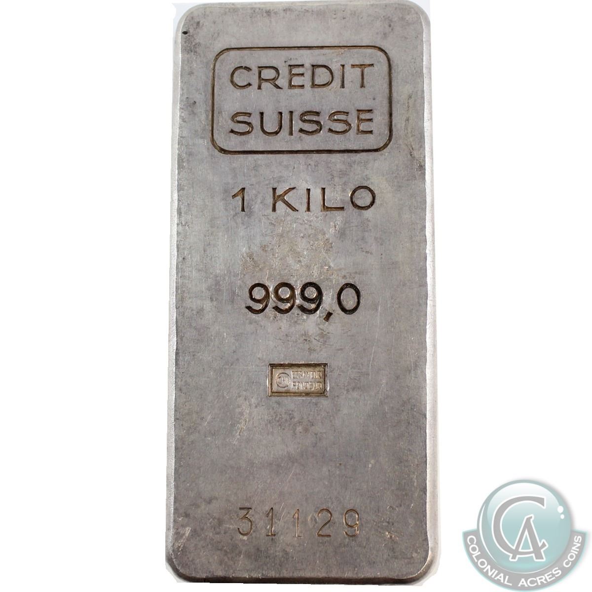 Vintage Credit Suisse 1 Kilo Fine Silver Bar (Tax Exempt). Serial # 31129