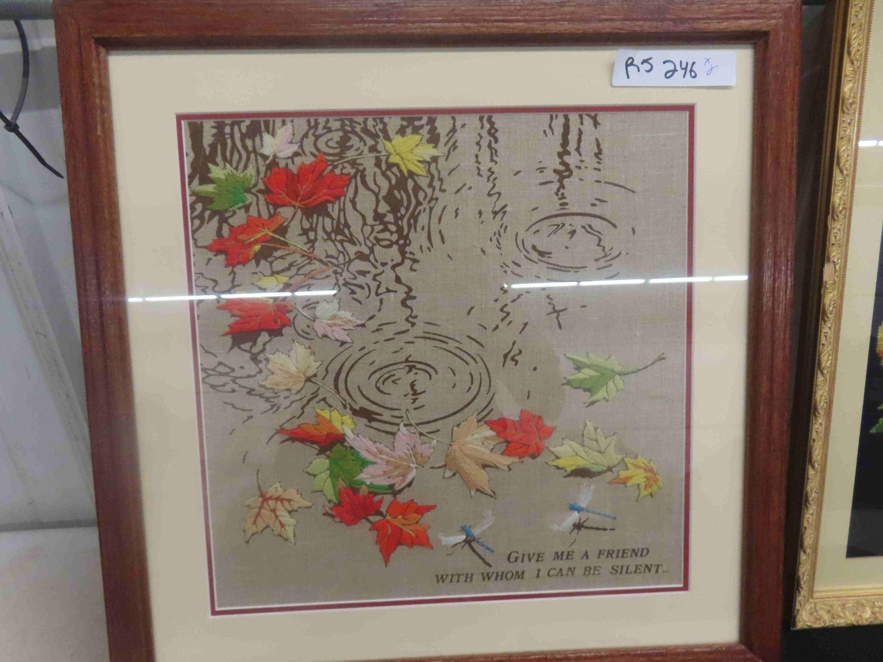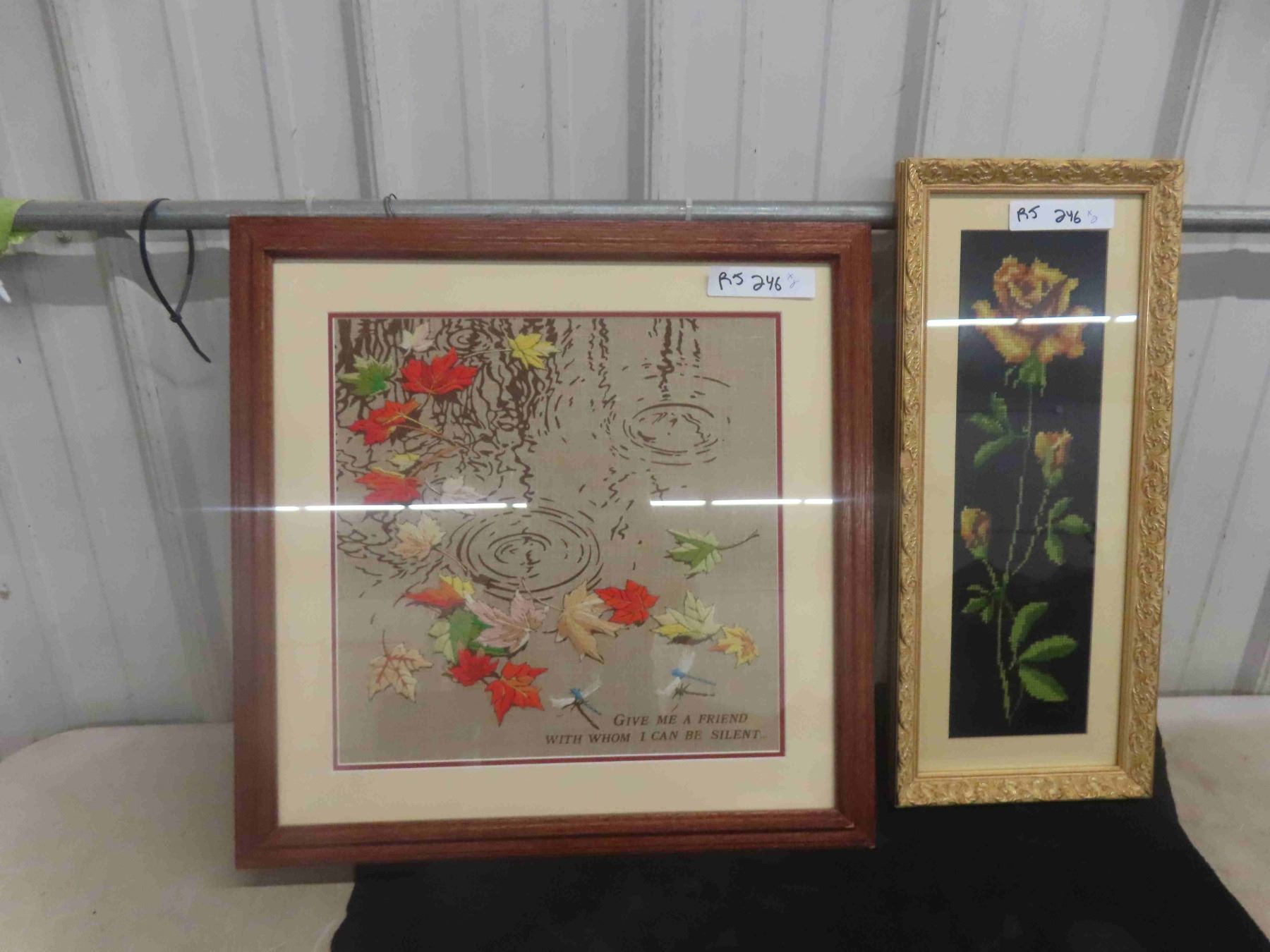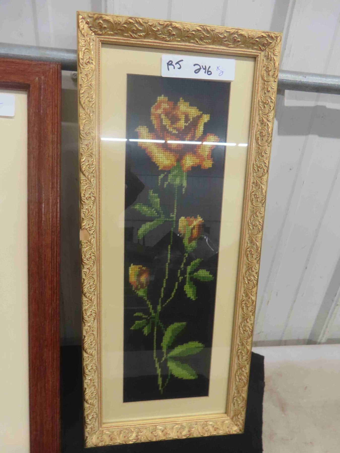 Vintage Crewei Work Framed Art 20 1/2'' x 20 1/2'' , Vintage Yellow Rose on Black Framed Small Needlepoint 9'' x 21 1/2''