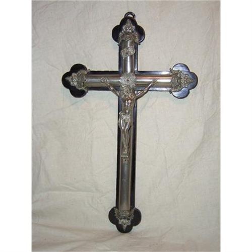 </font></strong>Wooden crucifix with silver plated cross on it, with silver plated Jesus Christ on it.