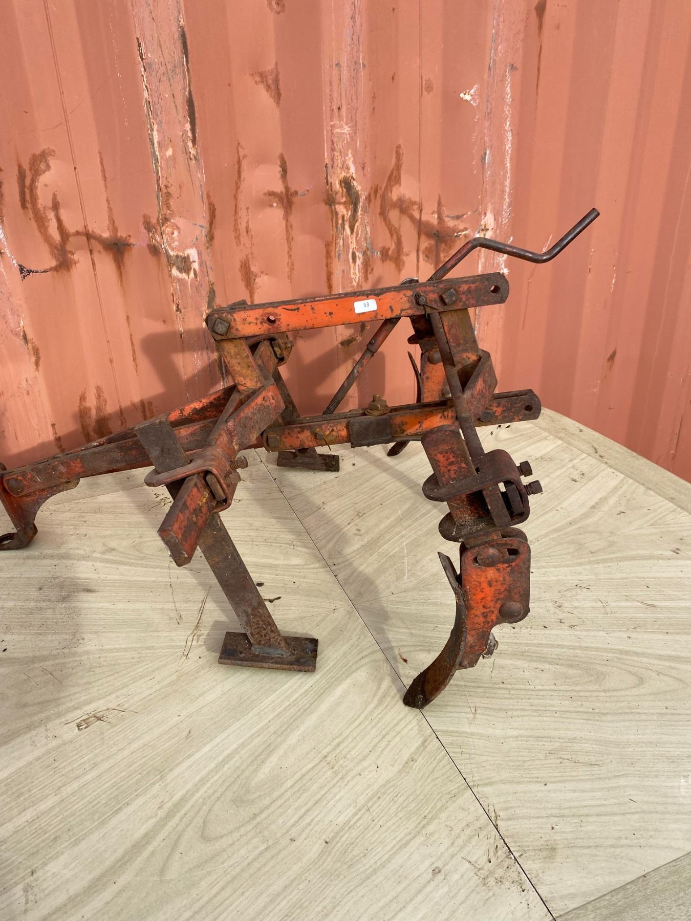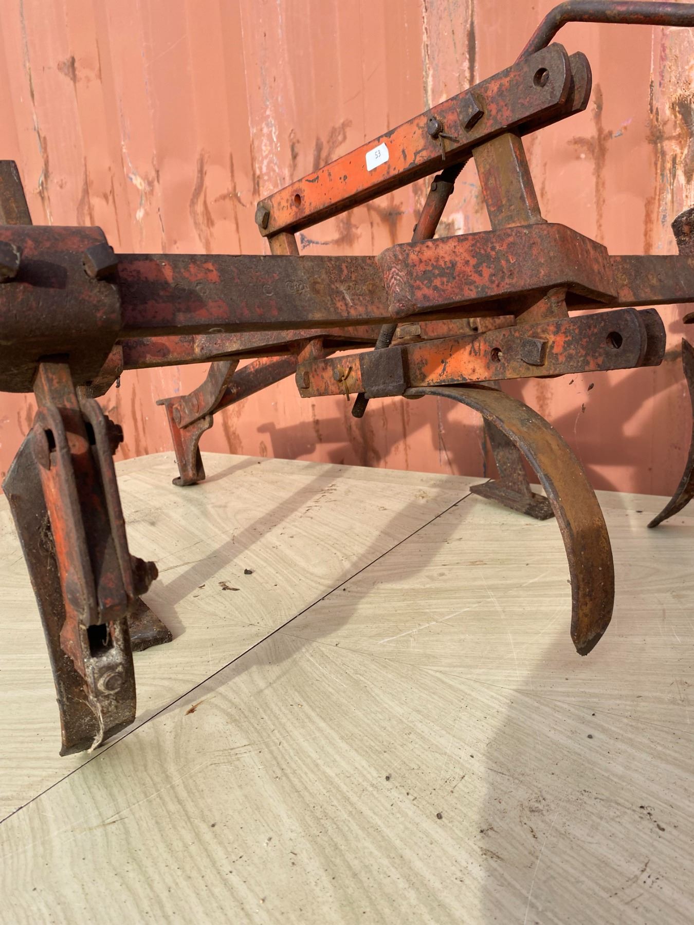 Heavy metal cultivator/tiller frame attachment; weathered farm piece suitable for yard art or restoration.