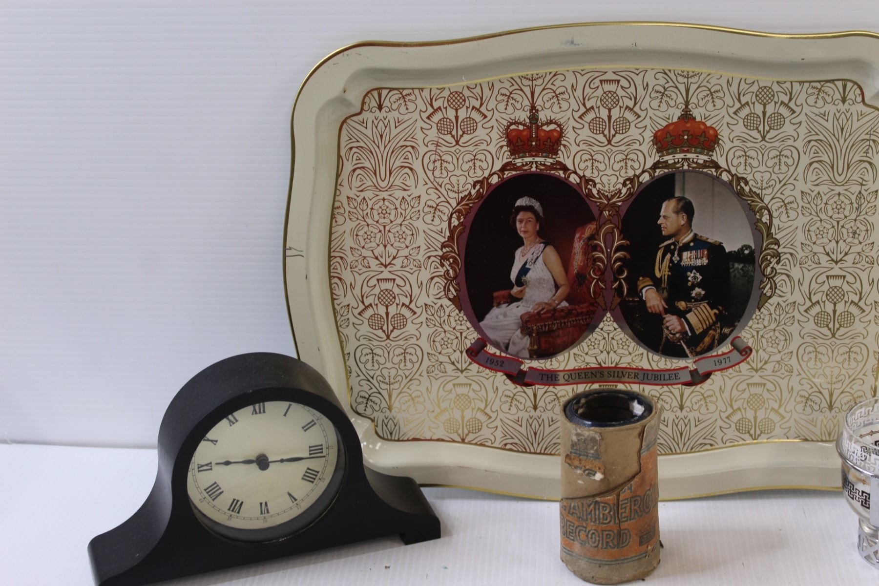 Vintage Cup Set w/Carrying Holder, Queen Elizabeth II - 1977, IKEA Mantle Clock (Battery), Blue Amber Edison Record,