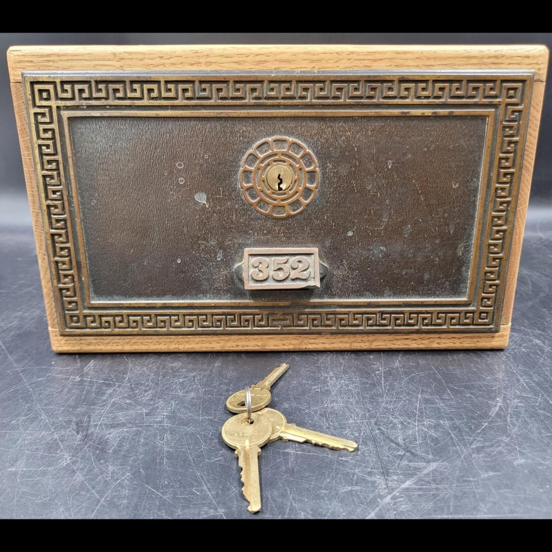 Vintage Custom Made 1890-1980s Style Post Office Lockbox. Measures approx. 15" X 12" X 7".