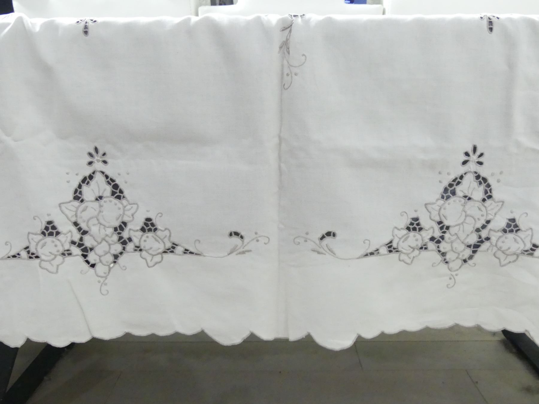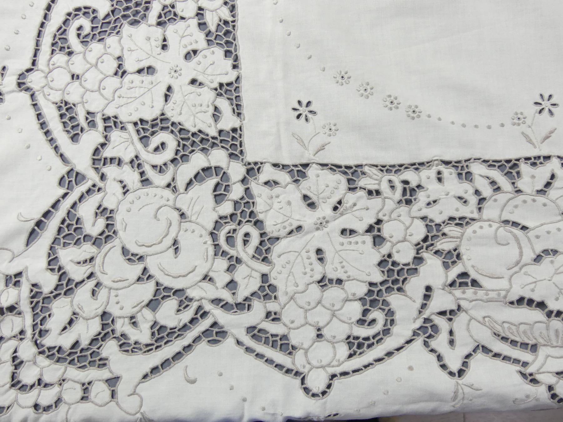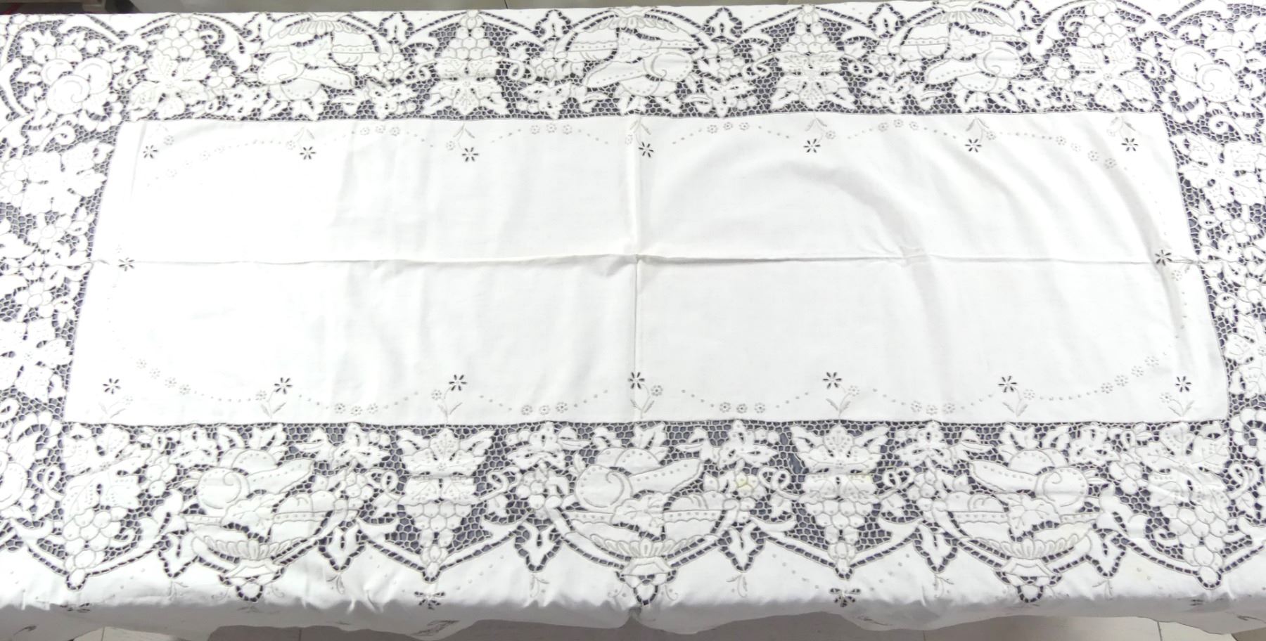 Vintage Cut Work & Embroidered Tablecloth Fruit & Leaf Design