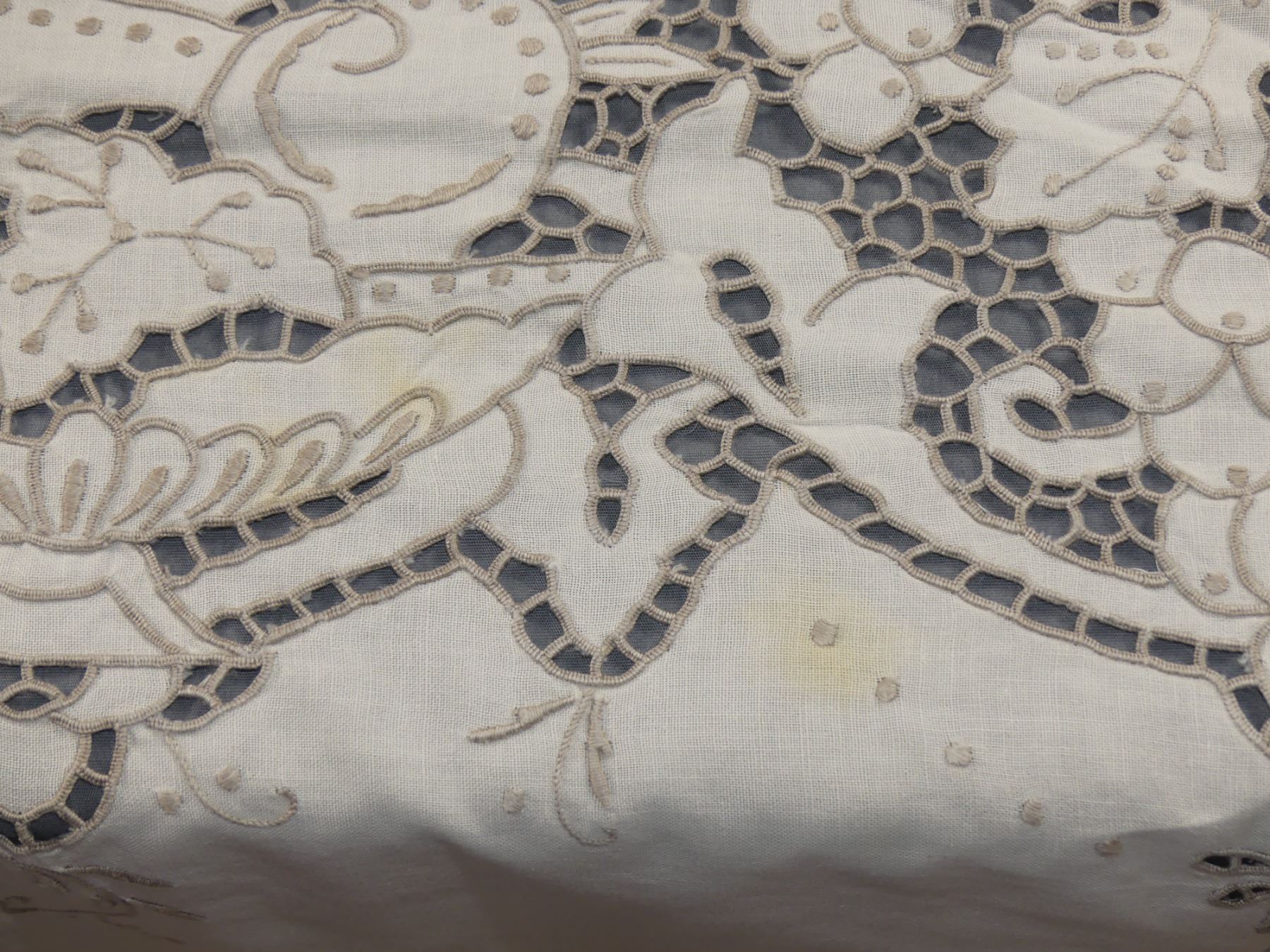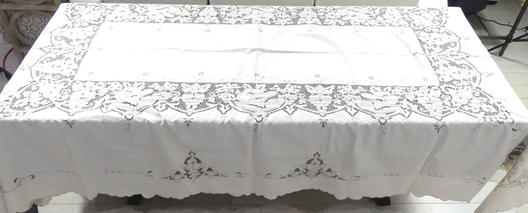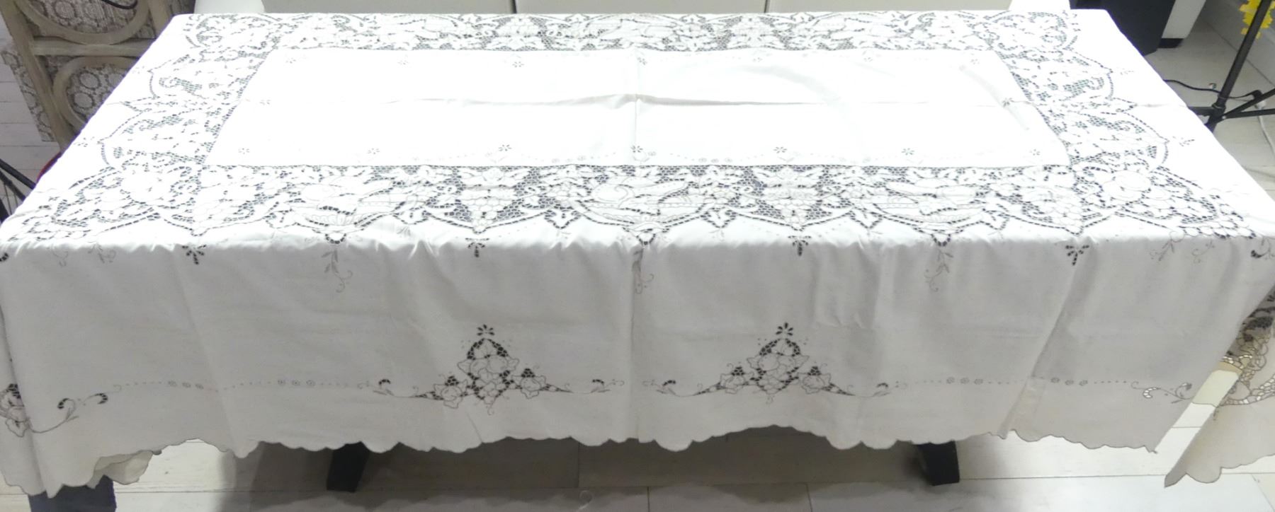 Vintage Cut Work & Embroidered Tablecloth Fruit & Leaf Design