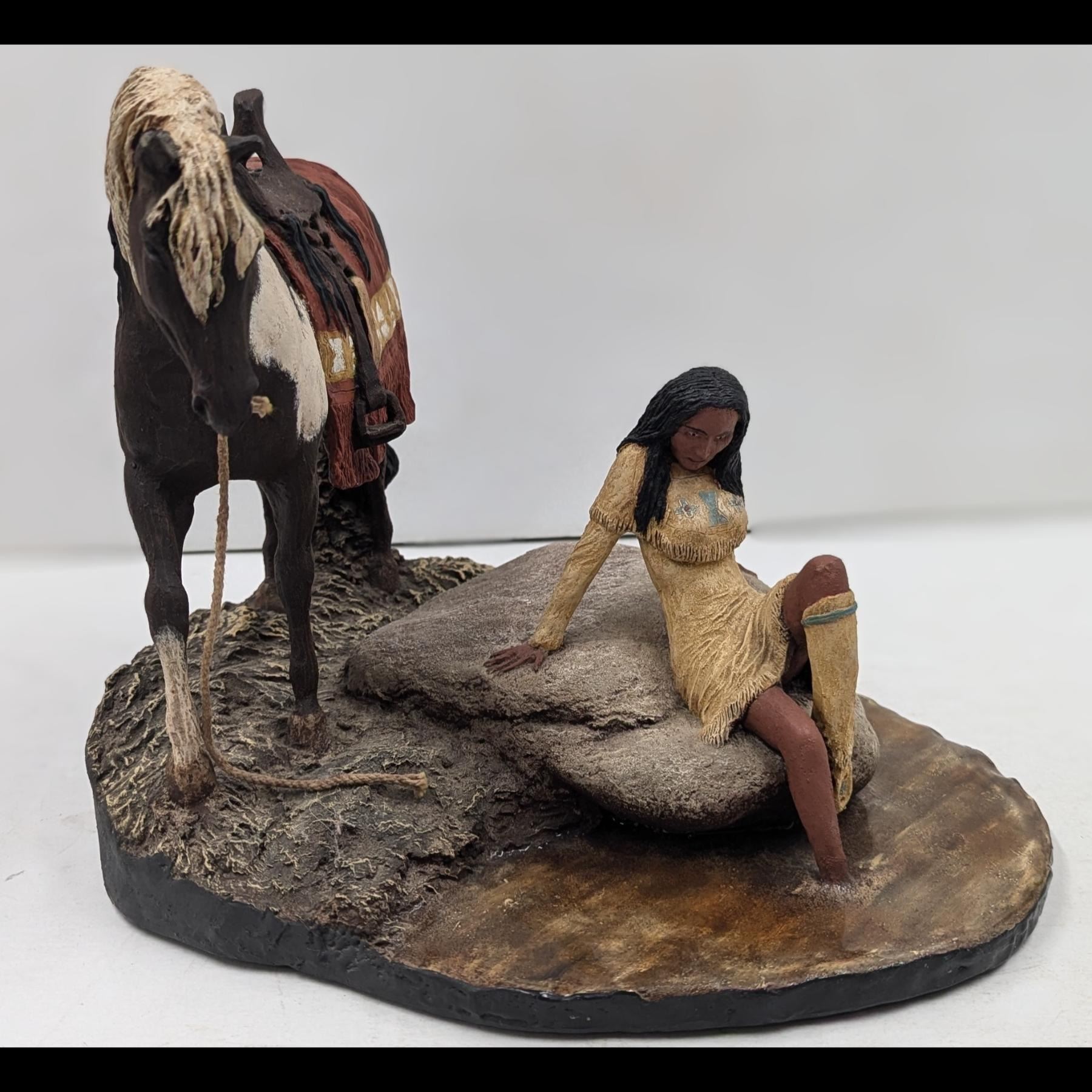 Vintage Daniel Monfort "Princess Wahkuna" Western Hydrostone Statue. Measures approx. 9 1/2" X 13".