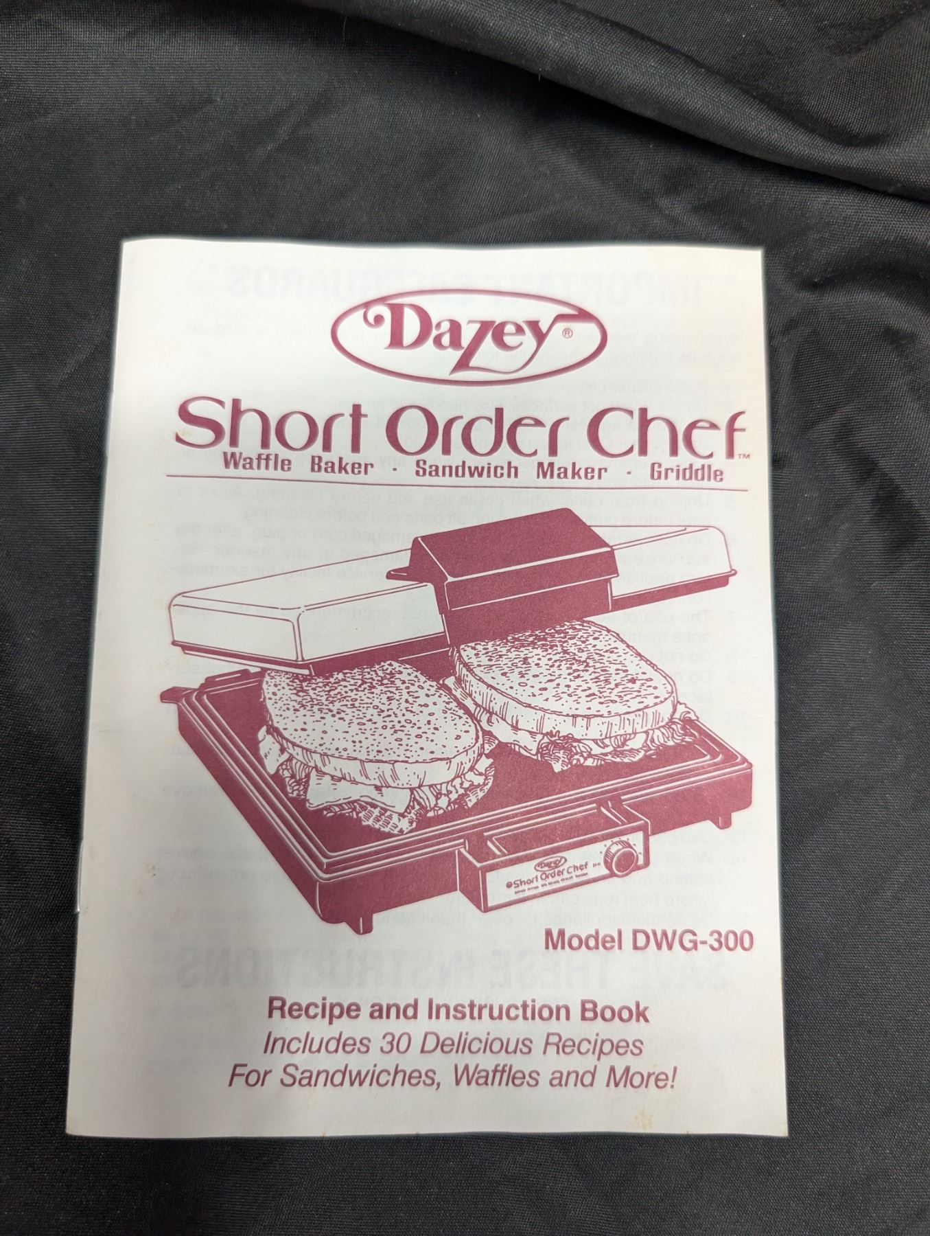 Vintage Dazey Short Order Waffle/Sandwich/Gridle Maker W/ Manual (Excellent Condition)