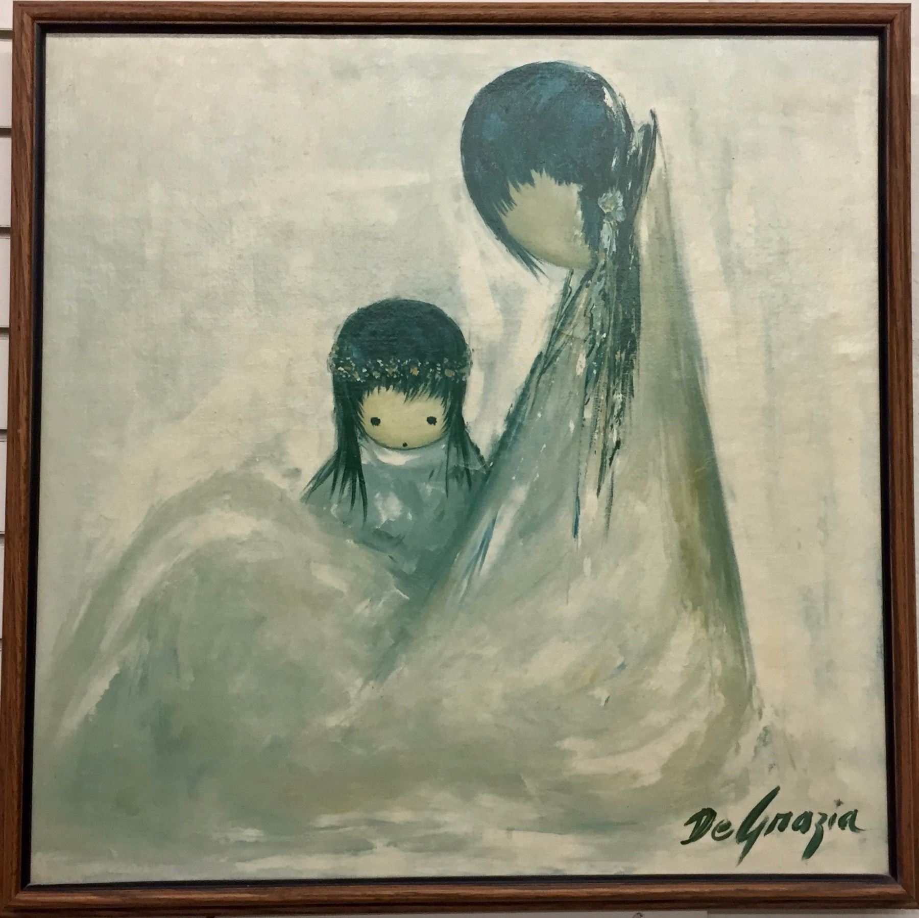 Maker: Ted DeGrazia (1909 - 1982). Approx. Age: Circa 1960s. Size: 26” X 26” with the frame. Condition: Fair, not perfect or pristine. Additional Info: Rare canvas transfer print by a well-known artist. Please look closely at the pictures - they are an important part of our description. Shipping: There will be a $10 handling / packaging fee for shipping this lot. The actual cost of postage will be added on top of that.