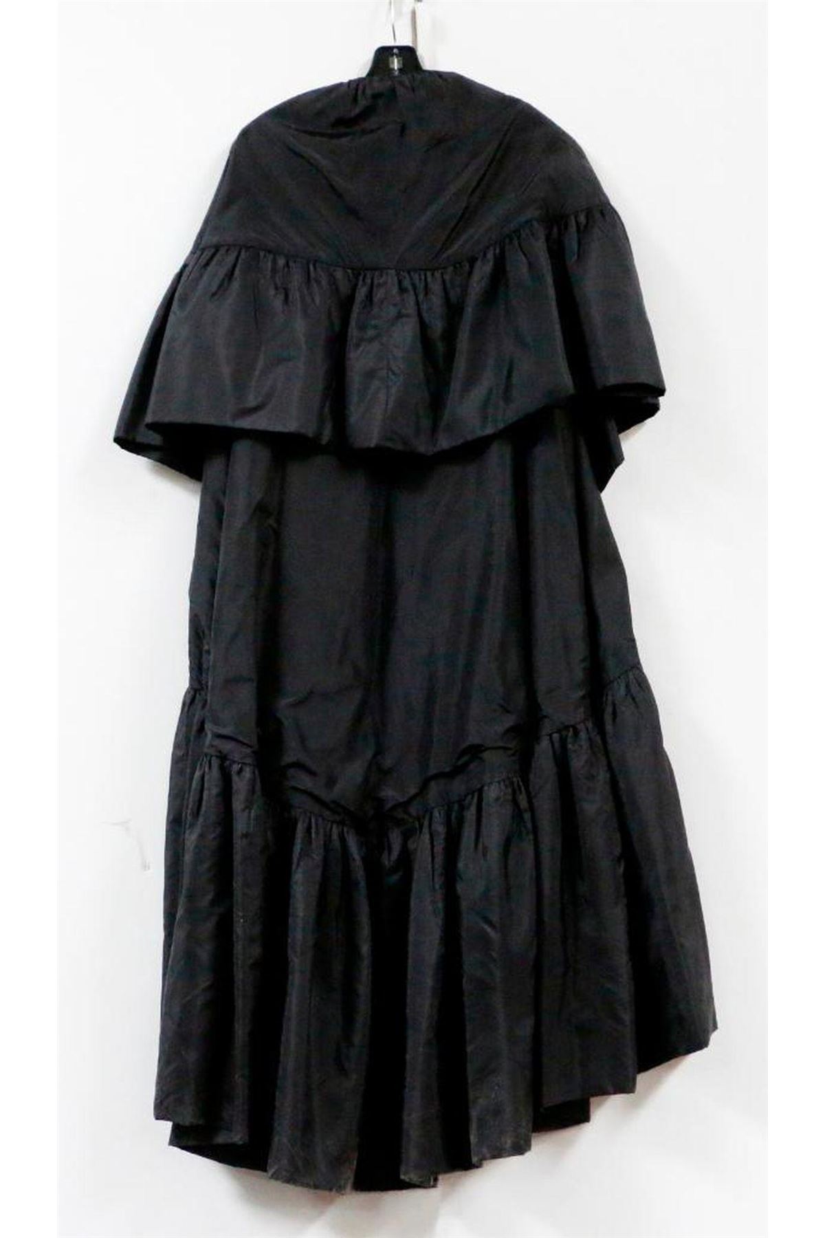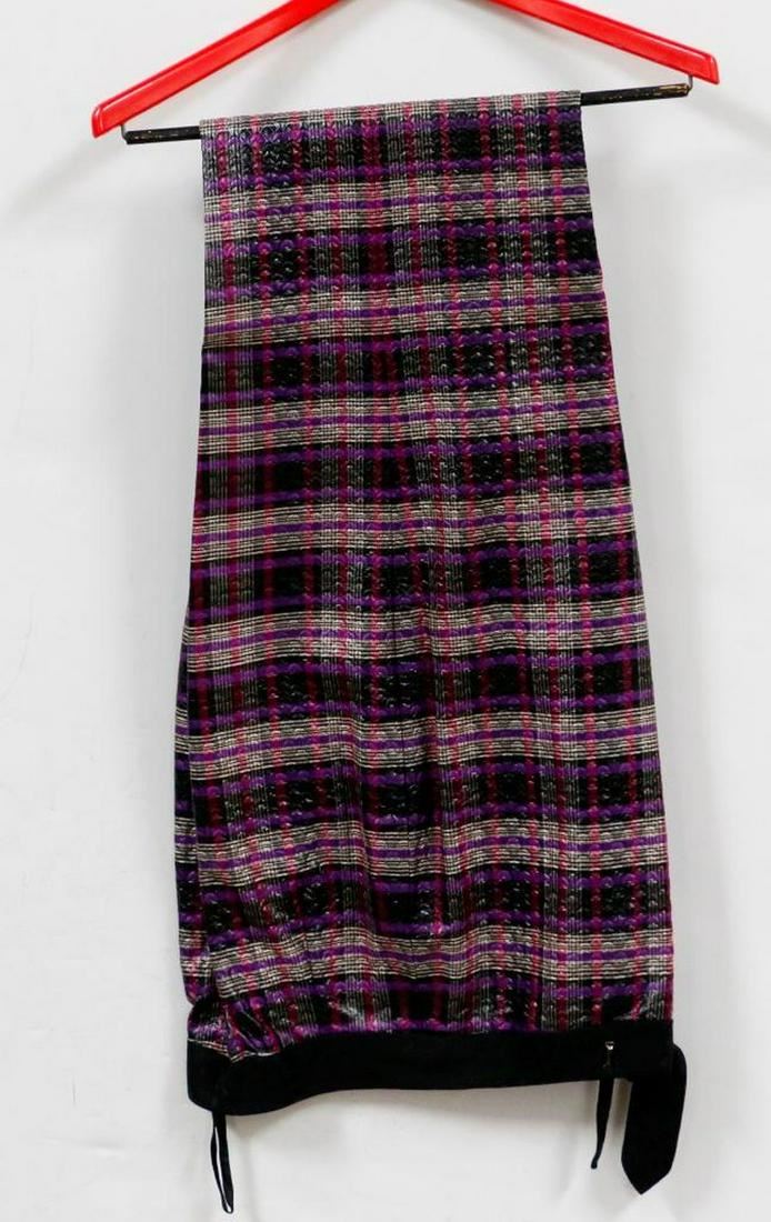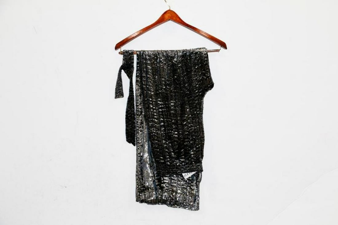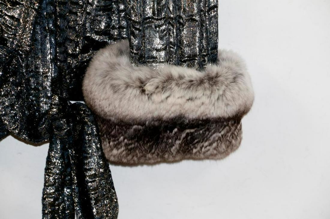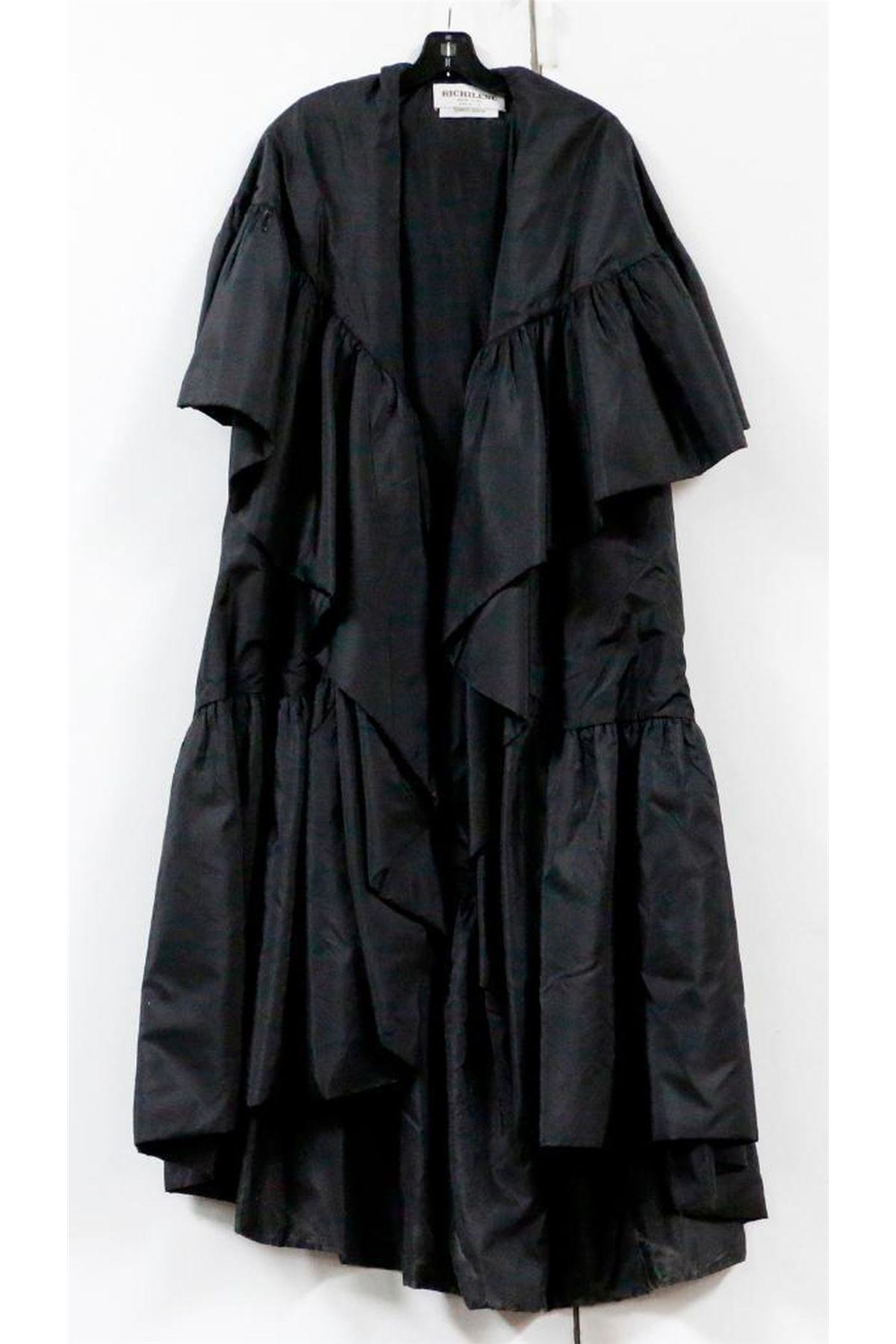 Including: Richilene NY, retailed by Neiman Marcus, black crepe ruffled cape Adolfo at Saks Fifth Avenue black & silver pants set with fur cuffs, no size Adolfo at Saks fifth Avenue pants suit with reversible fur jacket, size 10 Items are sold as is. Please inquire about condition if not otherwise stated.