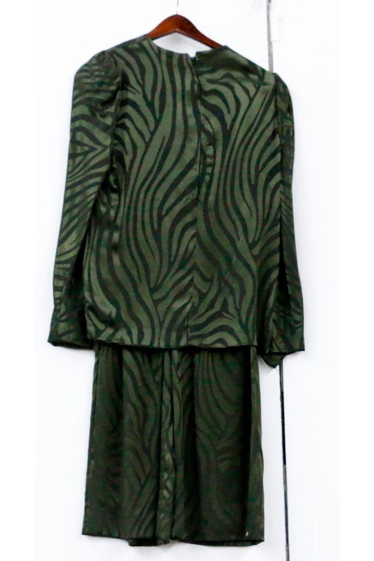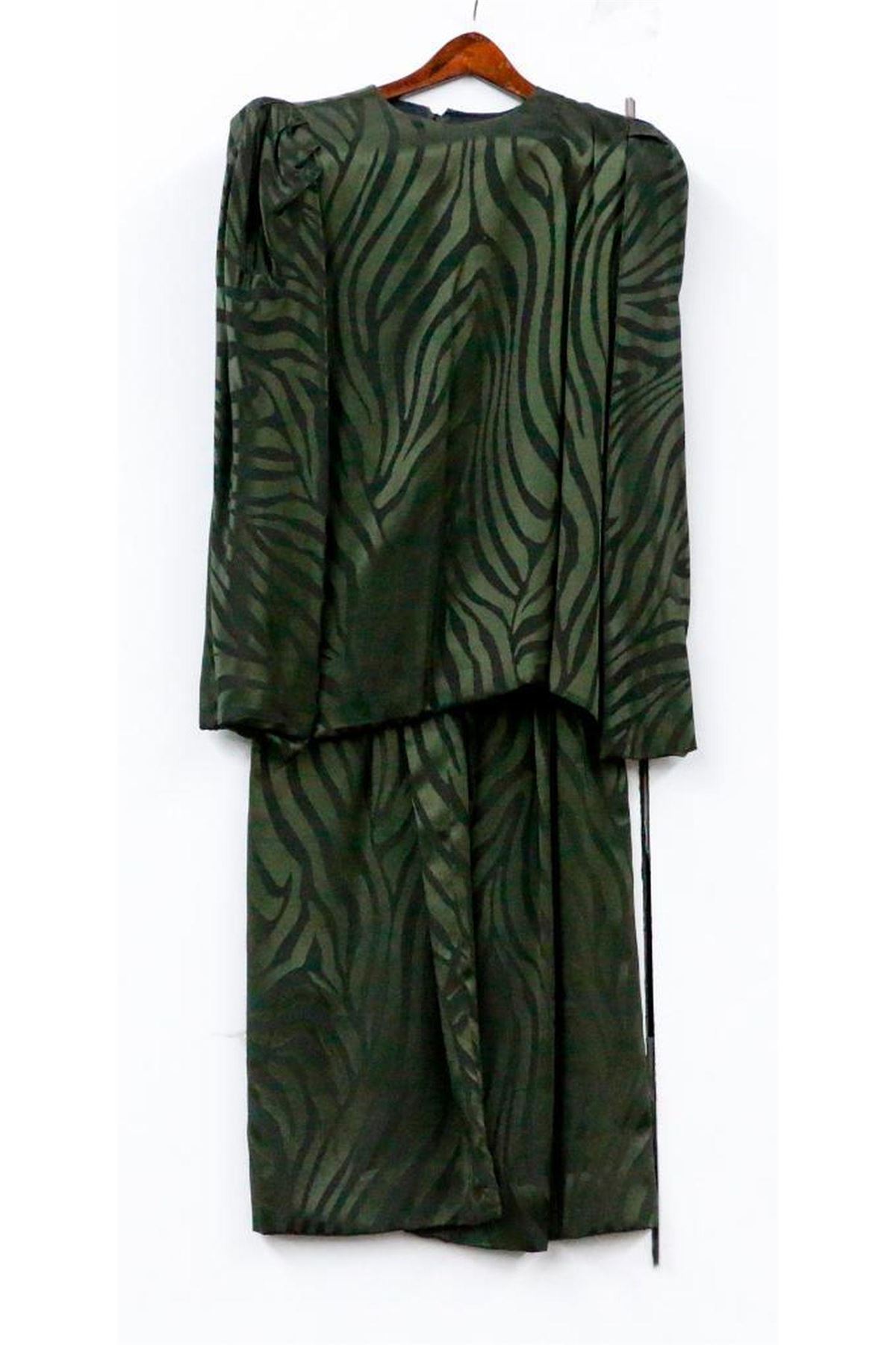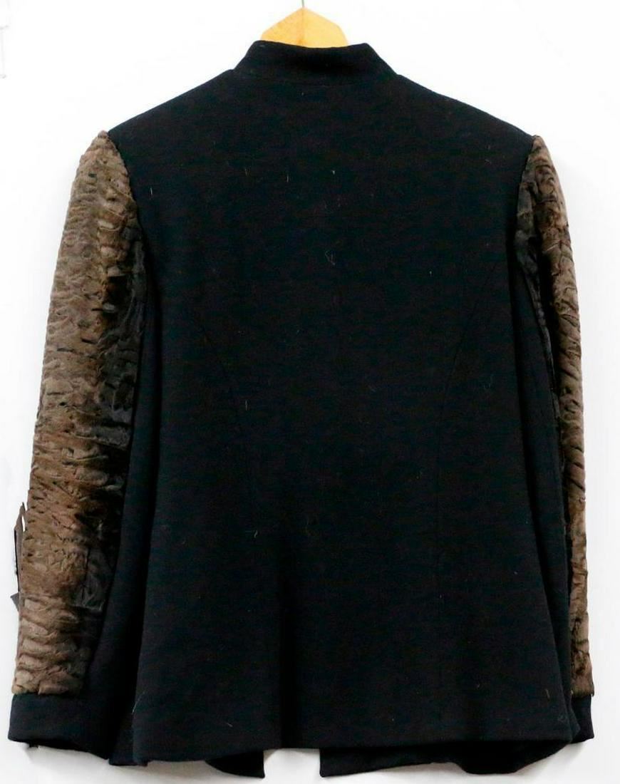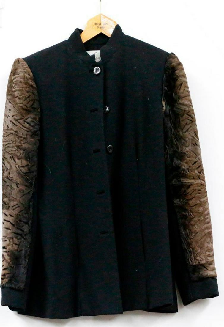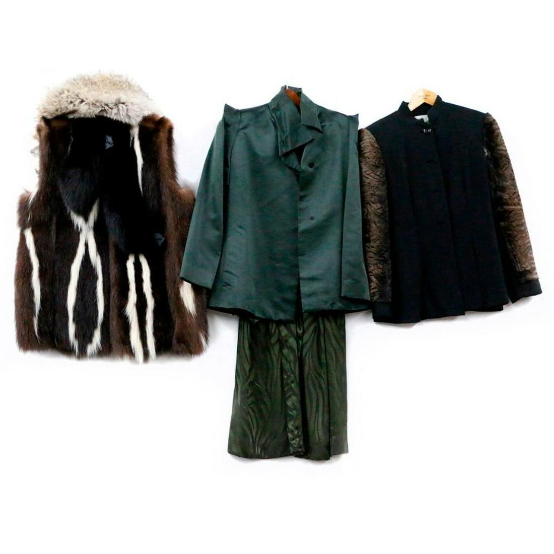 Including: Carolina Herrera Saks Fifth Avenue green 3-piece silk pants suit, size 14 William Travilla black wool & fur sleeve skirt suit, size 12 Fur vest with removable collar, no size Items are sold as is. Please inquire about condition if not otherwise stated.