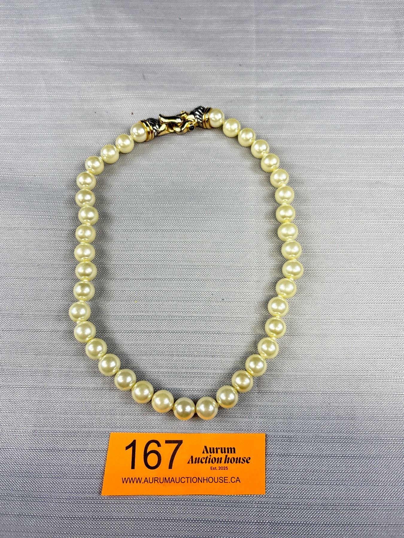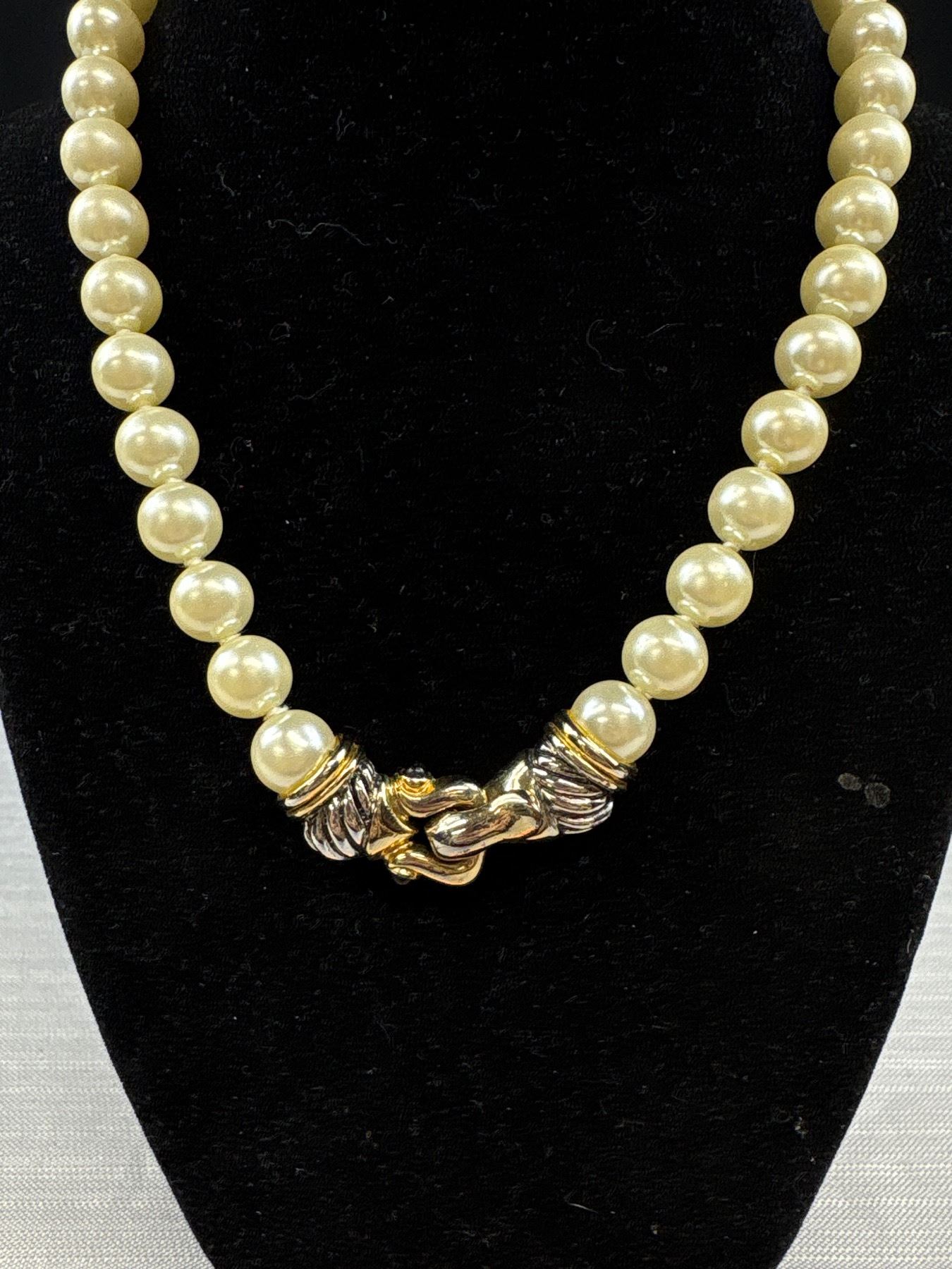 Vintage Designer Pearl Choker/Bracelet w/ Two Tone Clasp