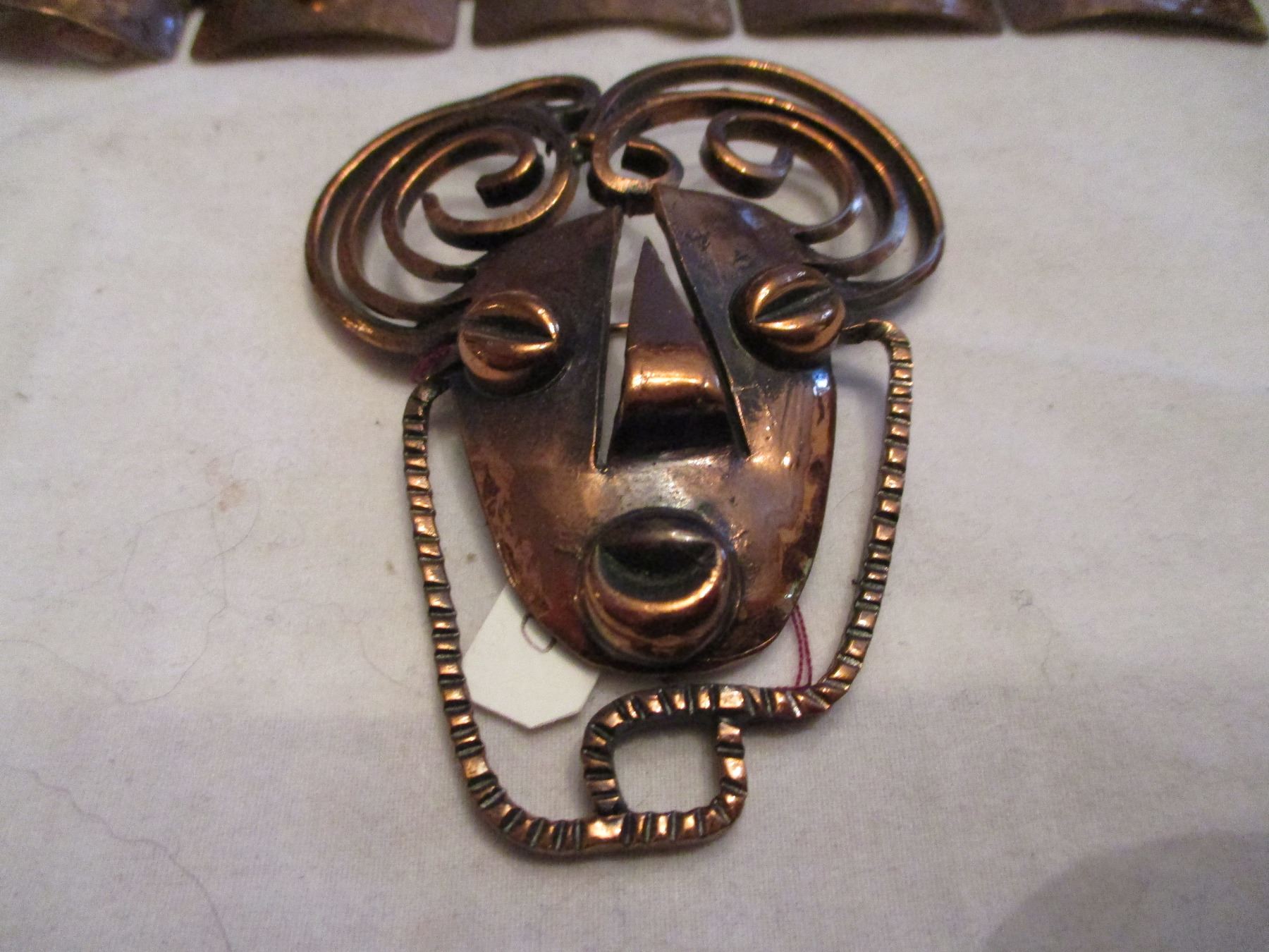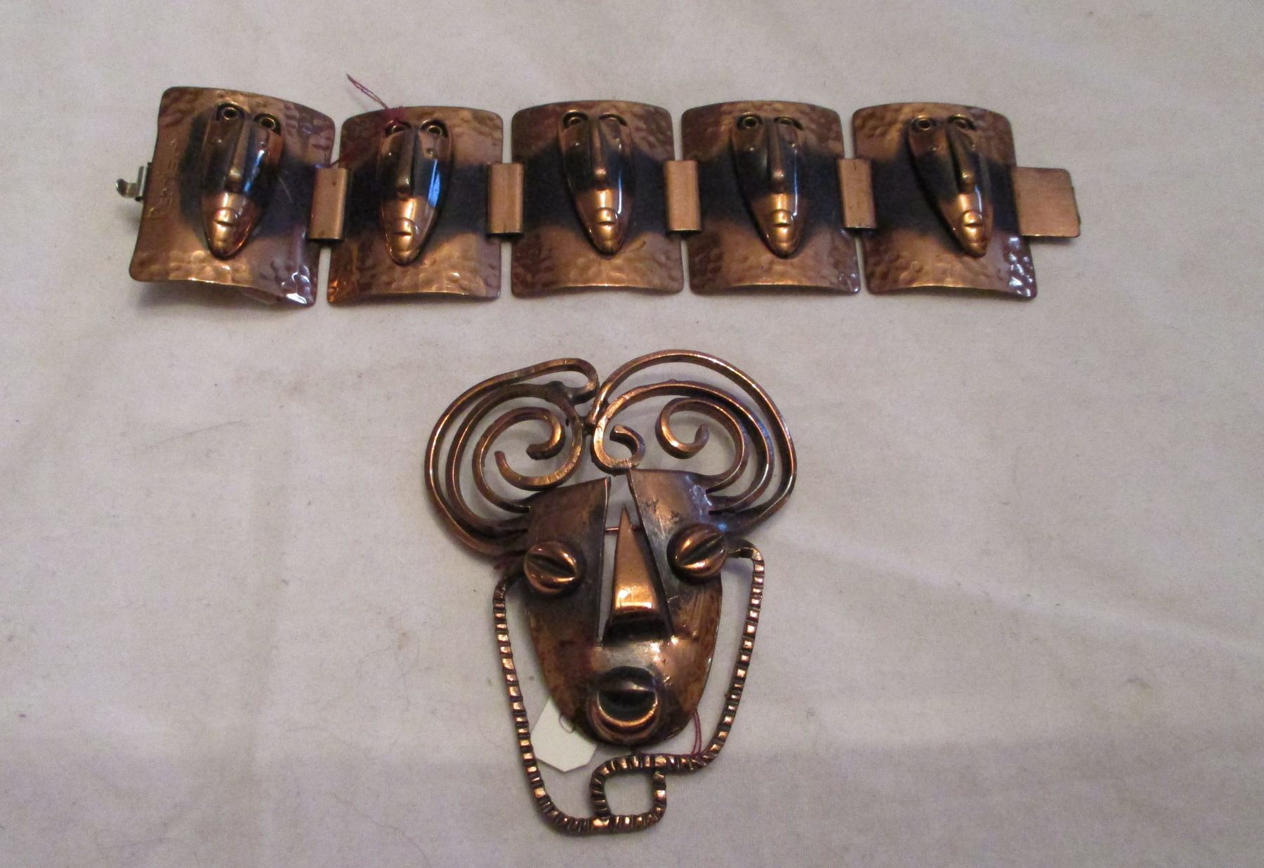 Vintage Rebajes Copper Jewelry bracelet and brooch set.