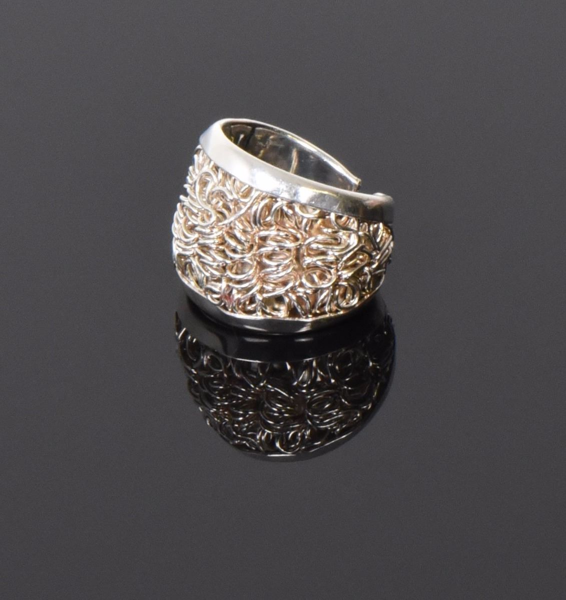 Vintage Designer Sterling Silver Swirled Wire Ring. Ring Size: 10 Silver Tested. Estimated more than 50 yrs old. 925 Sterling Silver consisting of 92.5% silver and 7.5% copper. Tested Positive using Nitric Acid Chemical Scratch Test, Cloth Rub Test, Smell Test, and Magnet Test. Markings of 925 or Sterling stamp. The reason silver needs to be combined with other metals is that it is very difficult to make great designs with just pure silver, which is very soft and malleable. A bit of hardness has to be introduced by adding other metals such as copper. That is why jewelers are capable of making the most intricate an complex designs with 925 Sterling Silver. Silver is one of the most valuable elements next to gold. Mexico is the leading producer of sliver, followed by the United States, Canada, Australia, Spain, Peru, and Russia. Many countries do not require their precious metal items to be stamped and therefore we test to ensure we accurately represent the product. Size: See Ruler Photo. (Photos Represent The Condition Of The Lot.)