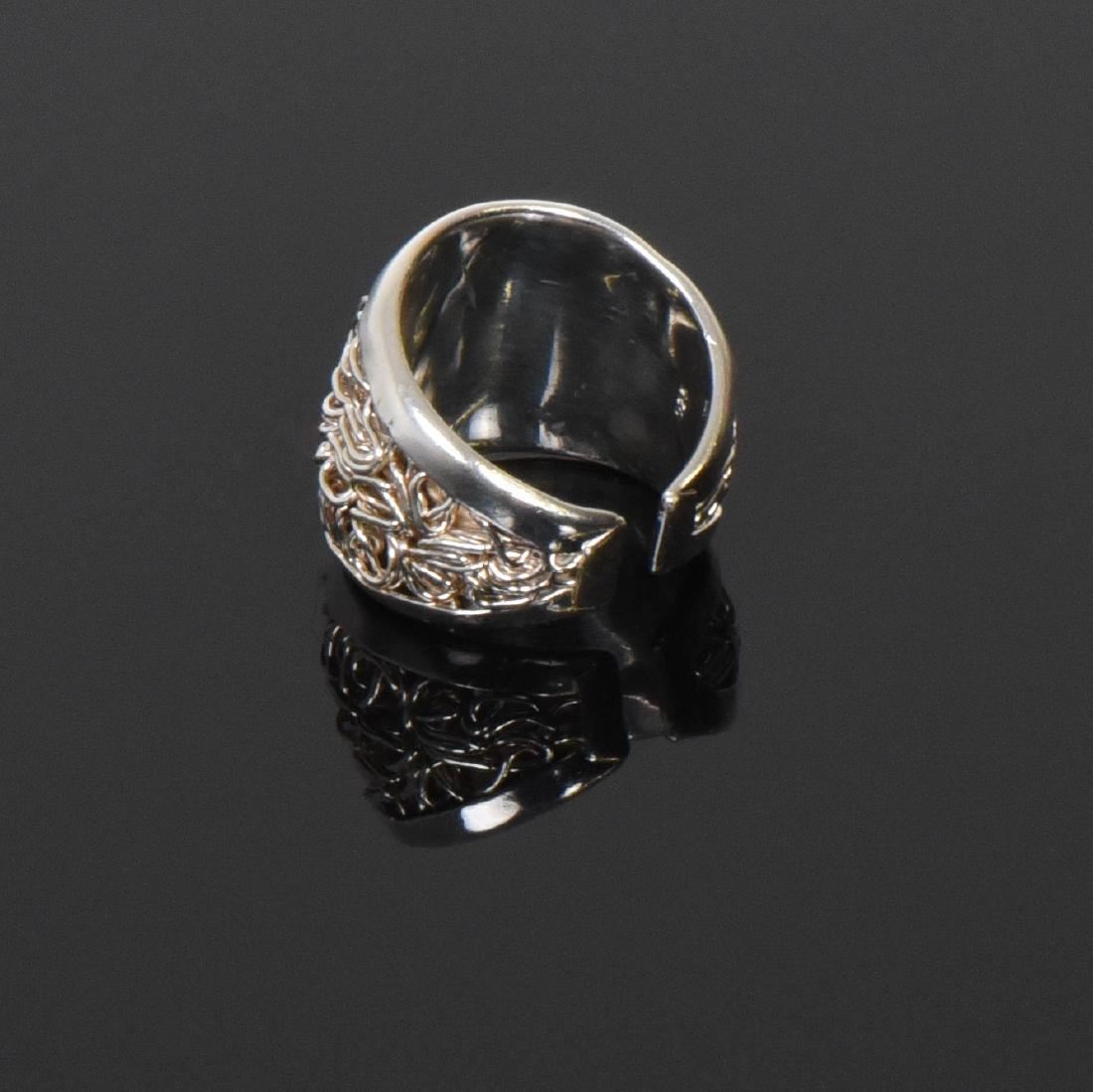 Vintage Designer Sterling Silver Swirled Wire Ring. Ring Size: 10 Silver Tested. Estimated more than 50 yrs old. 925 Sterling Silver consisting of 92.5% silver and 7.5% copper. Tested Positive using Nitric Acid Chemical Scratch Test, Cloth Rub Test, Smell Test, and Magnet Test. Markings of 925 or Sterling stamp. The reason silver needs to be combined with other metals is that it is very difficult to make great designs with just pure silver, which is very soft and malleable. A bit of hardness has to be introduced by adding other metals such as copper. That is why jewelers are capable of making the most intricate an complex designs with 925 Sterling Silver. Silver is one of the most valuable elements next to gold. Mexico is the leading producer of sliver, followed by the United States, Canada, Australia, Spain, Peru, and Russia. Many countries do not require their precious metal items to be stamped and therefore we test to ensure we accurately represent the product. Size: See Ruler Photo. (Photos Represent The Condition Of The Lot.)