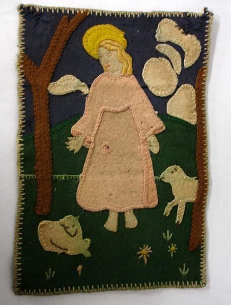 Vintage Devotional Cloth Art Applique, measures approx. 13 x 9''. Buyers Pay Actual Shipping and Handling Charges(see terms and conditions for more information)