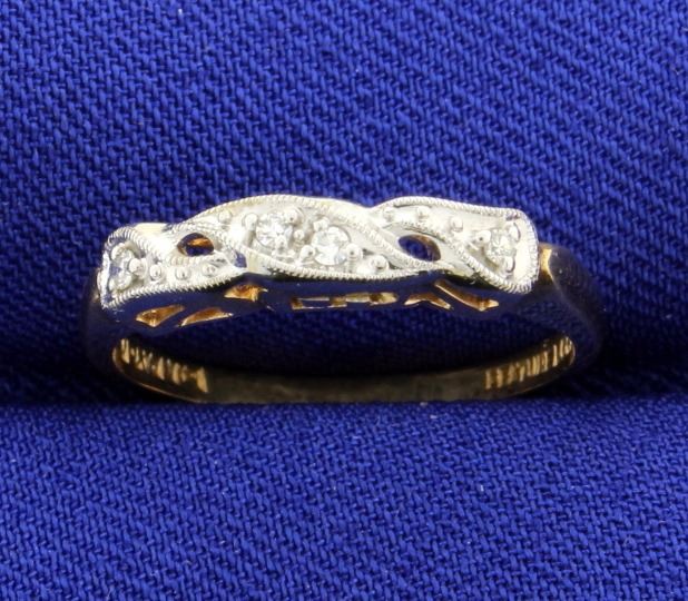 Beautiful Vintage diamond band ring with 4 diamonds that total 0.06 carats. Size 6 2.0g