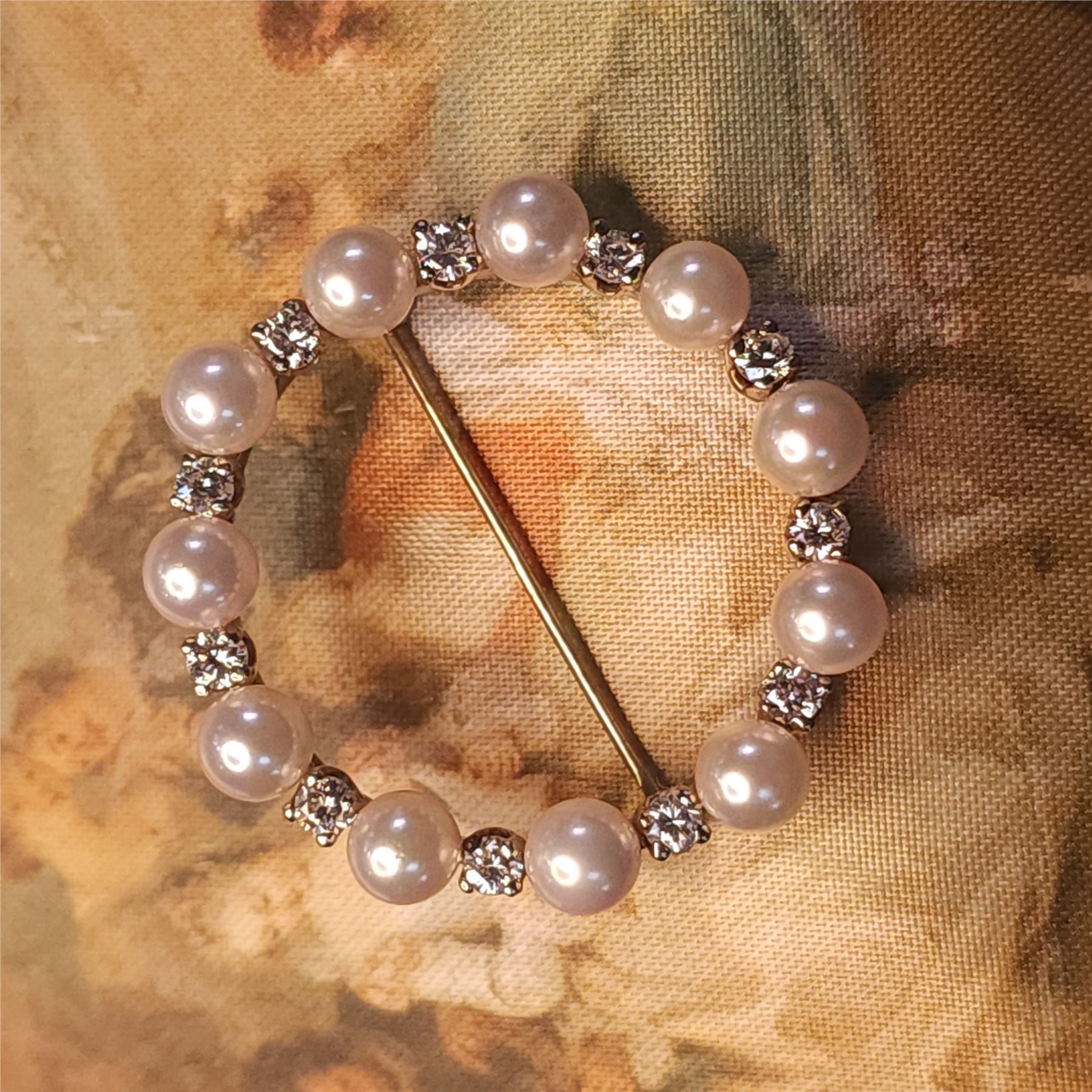 TITLE DESCRIPTION: Vintage Diamond & amp; Pearl Eternity Brooch