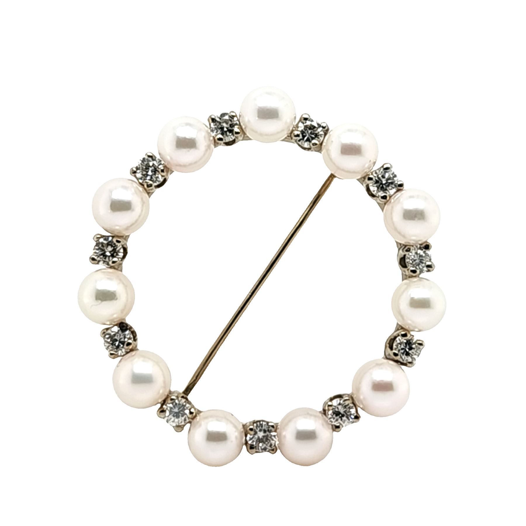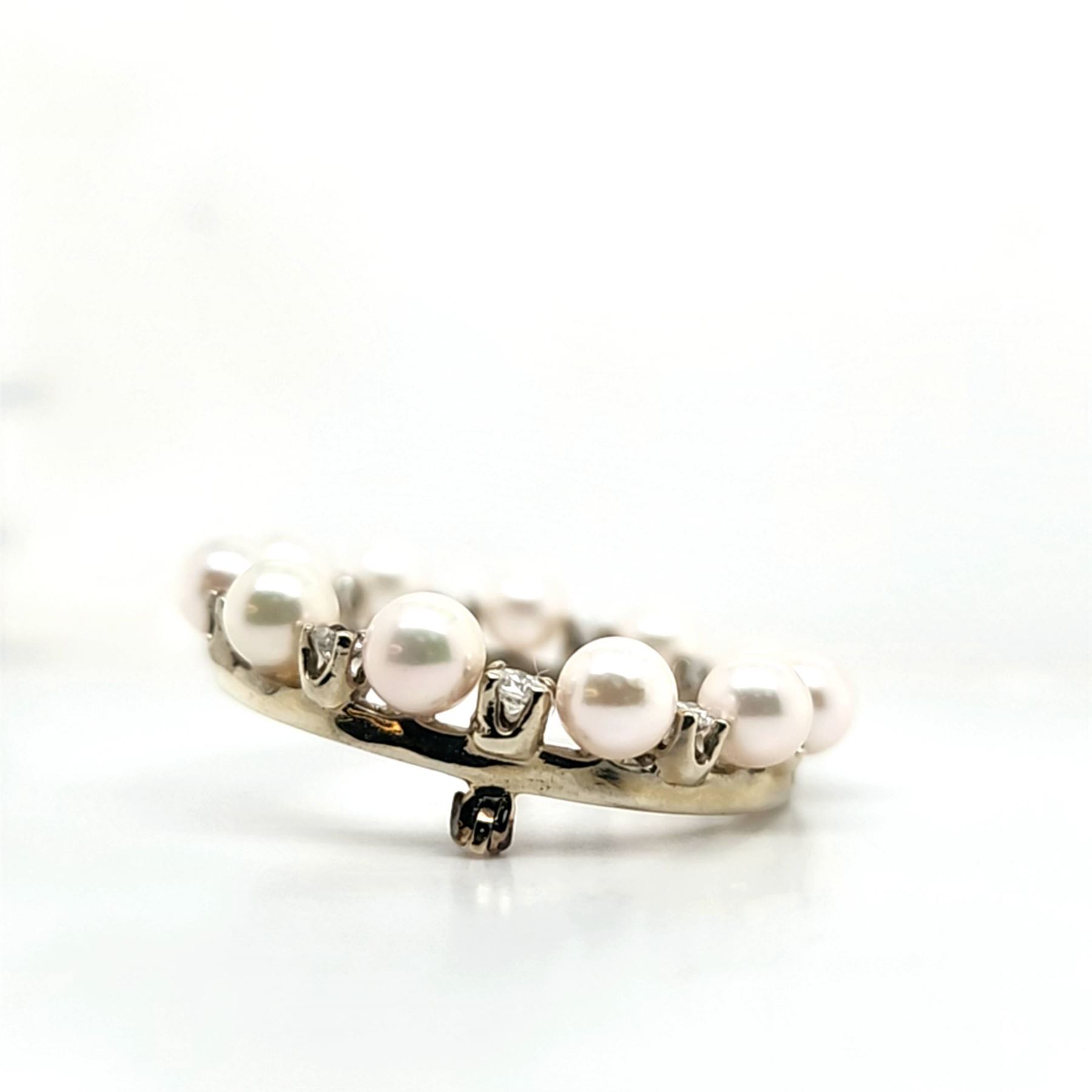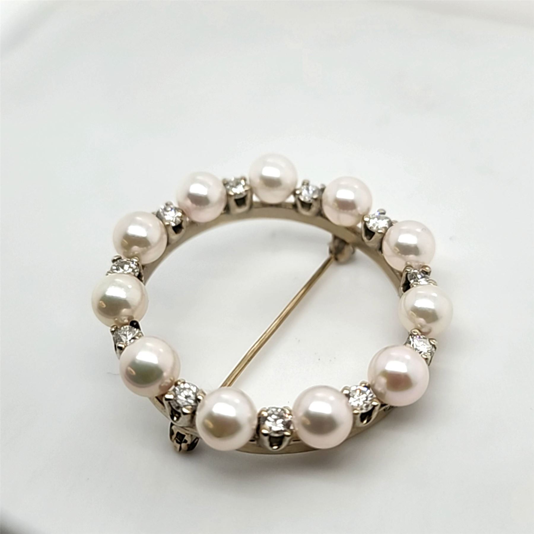 DESCRIPTION DETAIL: Vintage Diamond & amp; Pearl Eternity Brooch, 8.7 grams 1 1/2& quot;.