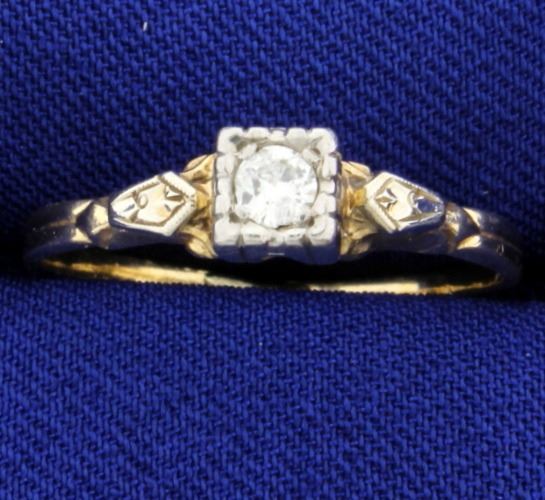 In 14K yellow gold, it contains a .15ct diamond-I clarity/ I color. Size 7 3/4 1.5g