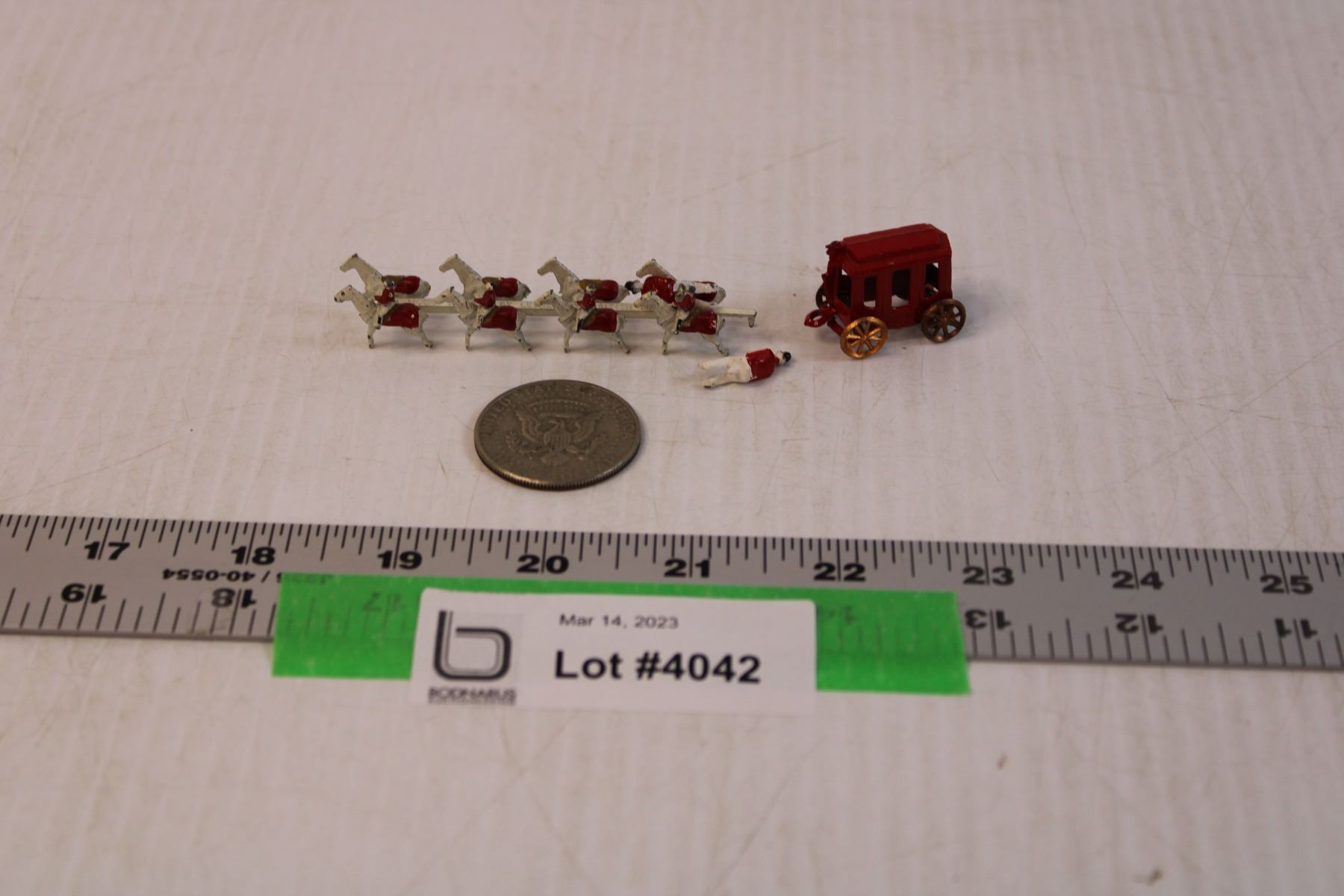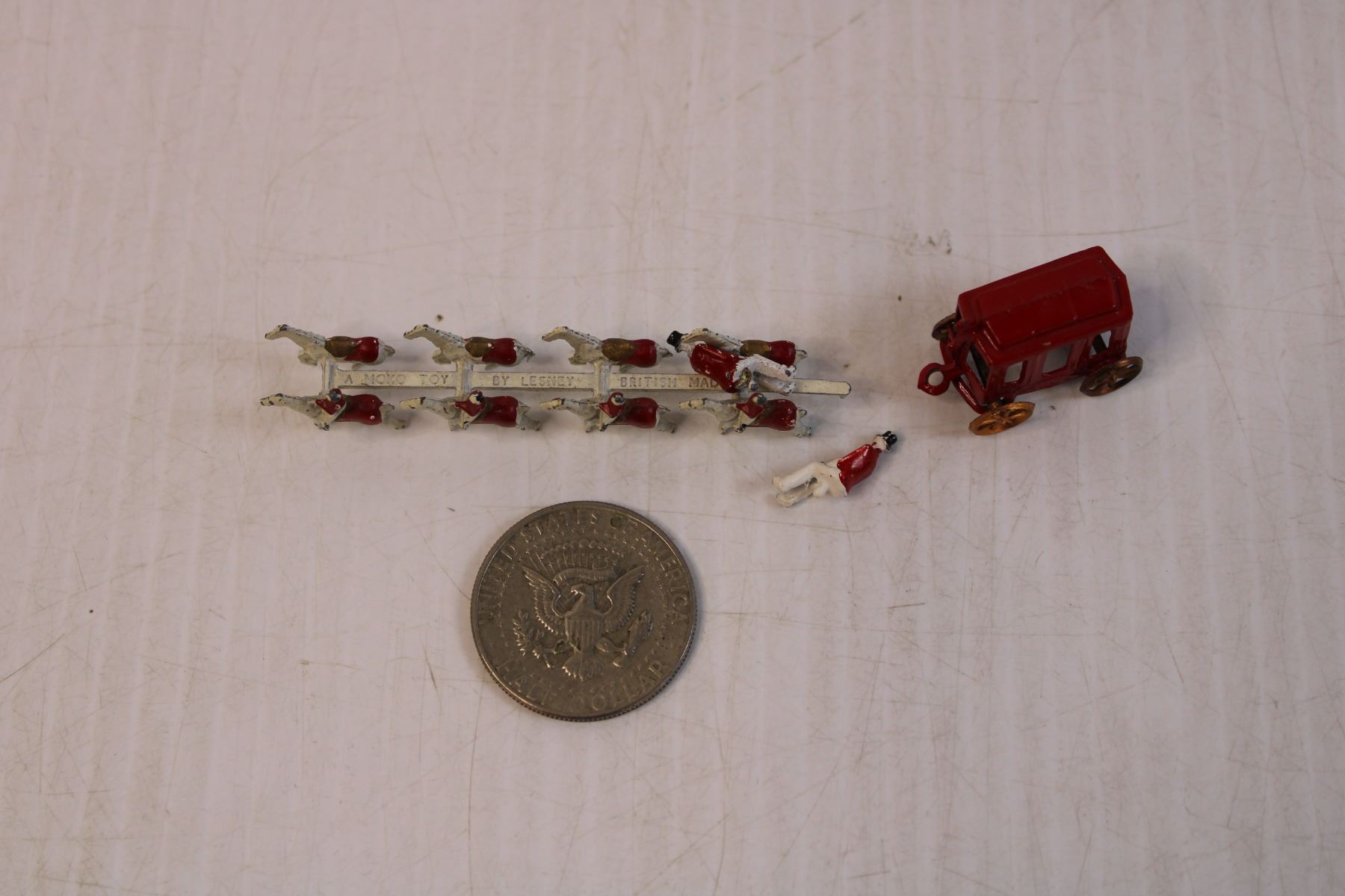 Vintage Die Cast Miniature Horses and Carriage and Collectible Coin