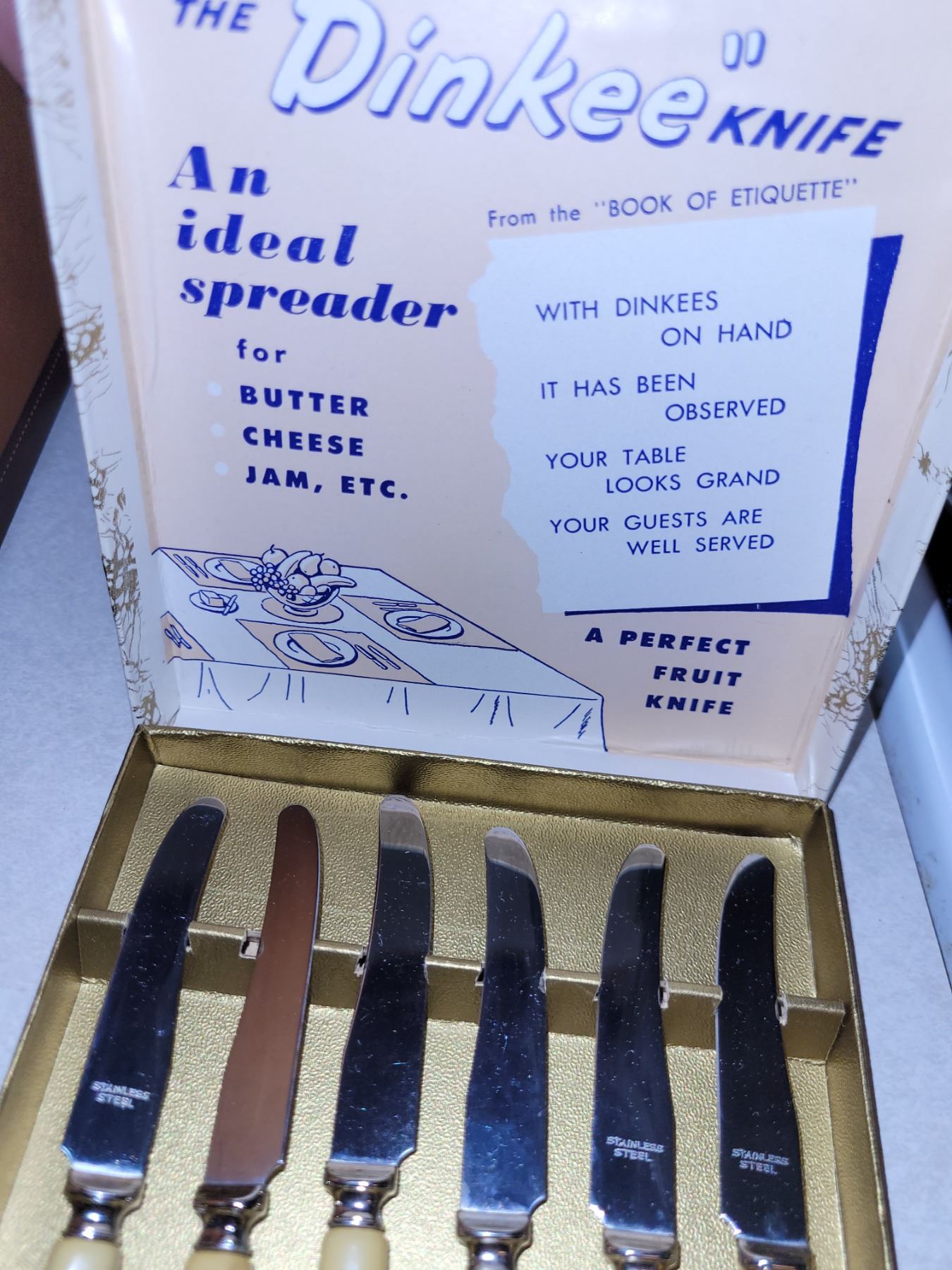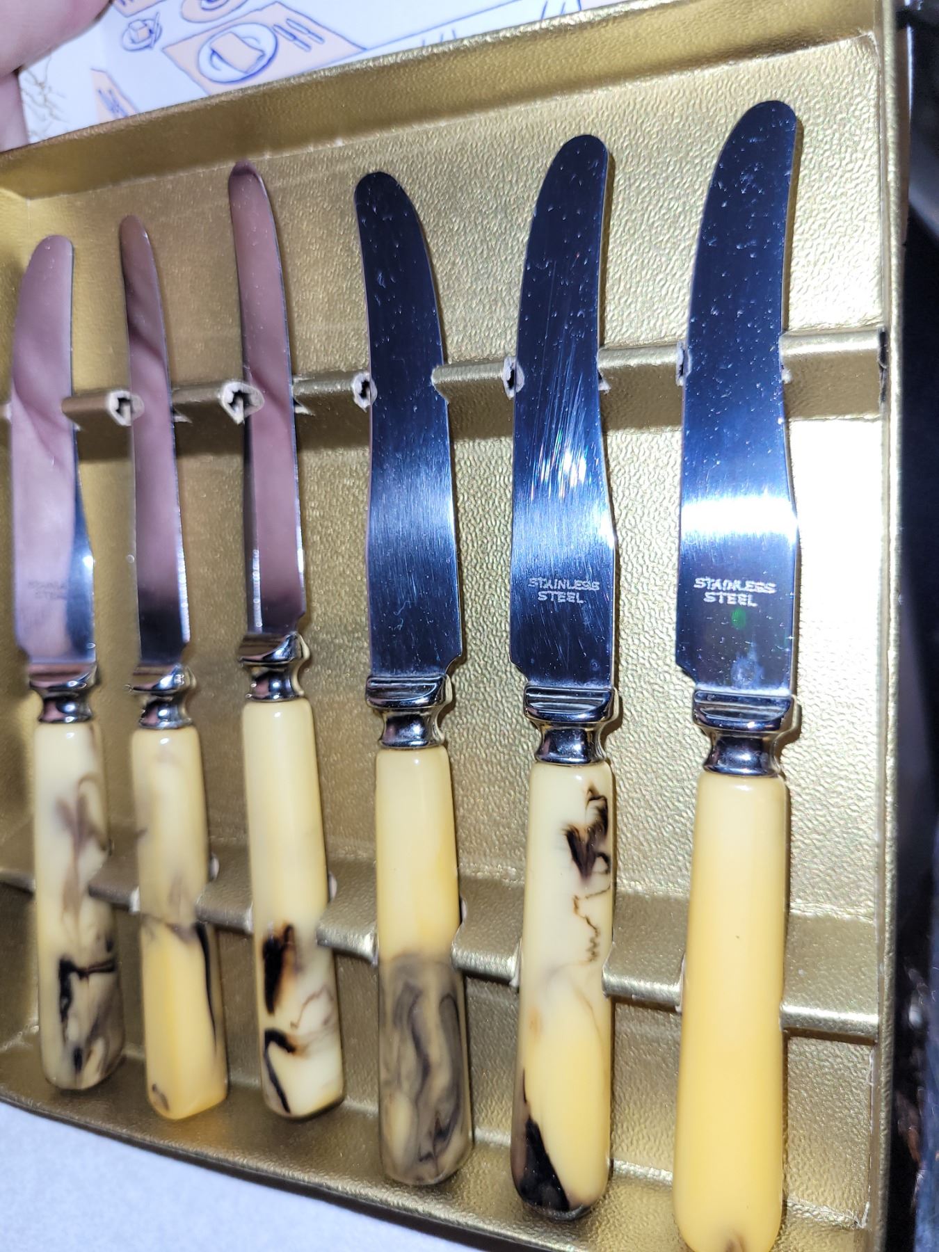 Vintage Dinkee Spreader Knife Set - Bakelite, Butterscotch