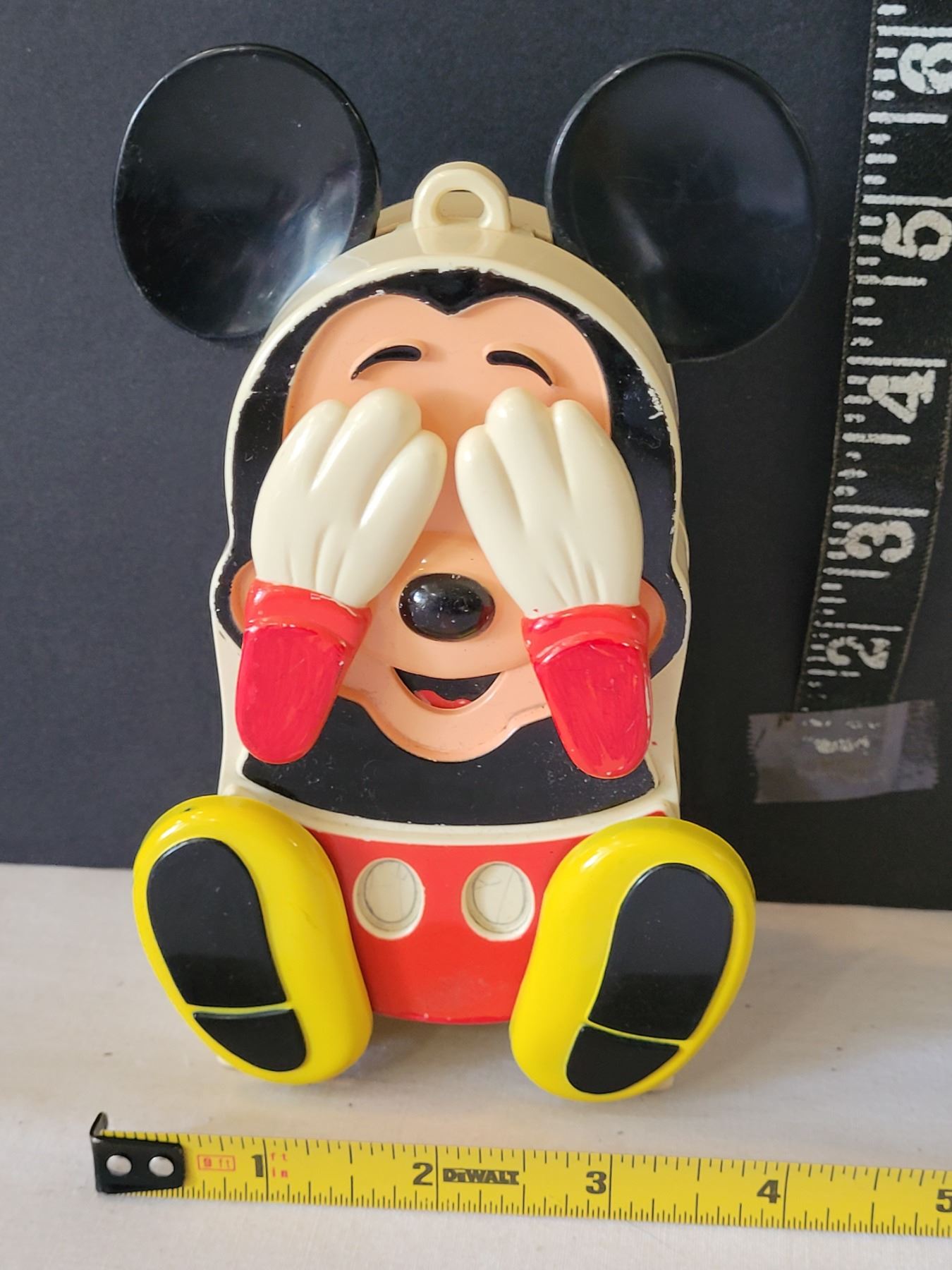 Vintage Disney Mickey Mouse musical “peek-a-Boo” wind up toy. Working. Made in Macau.