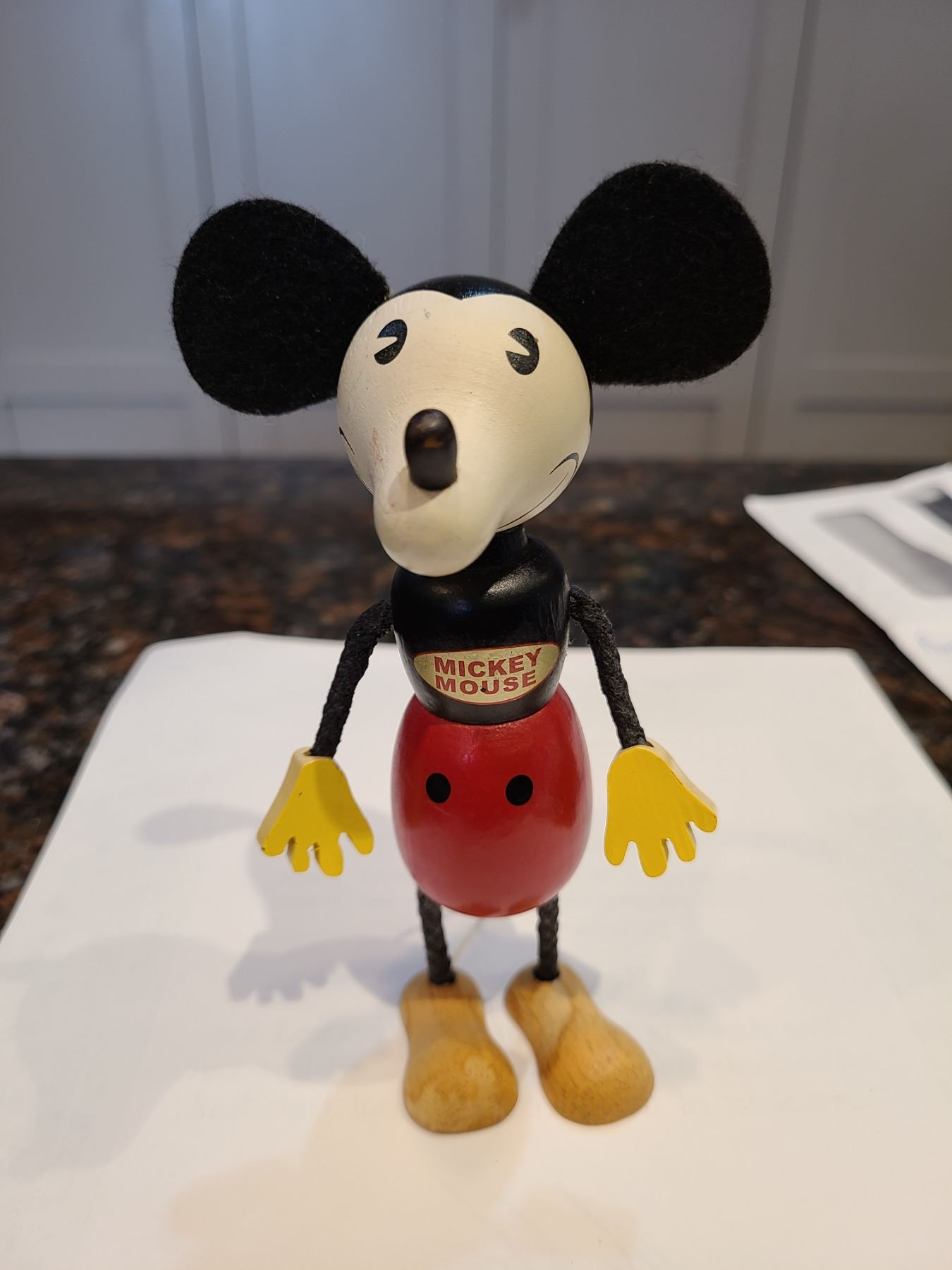 Vintage Disney's Wooden Mickey Mouse from Schylling c1930's. Pickup at 9:00 am