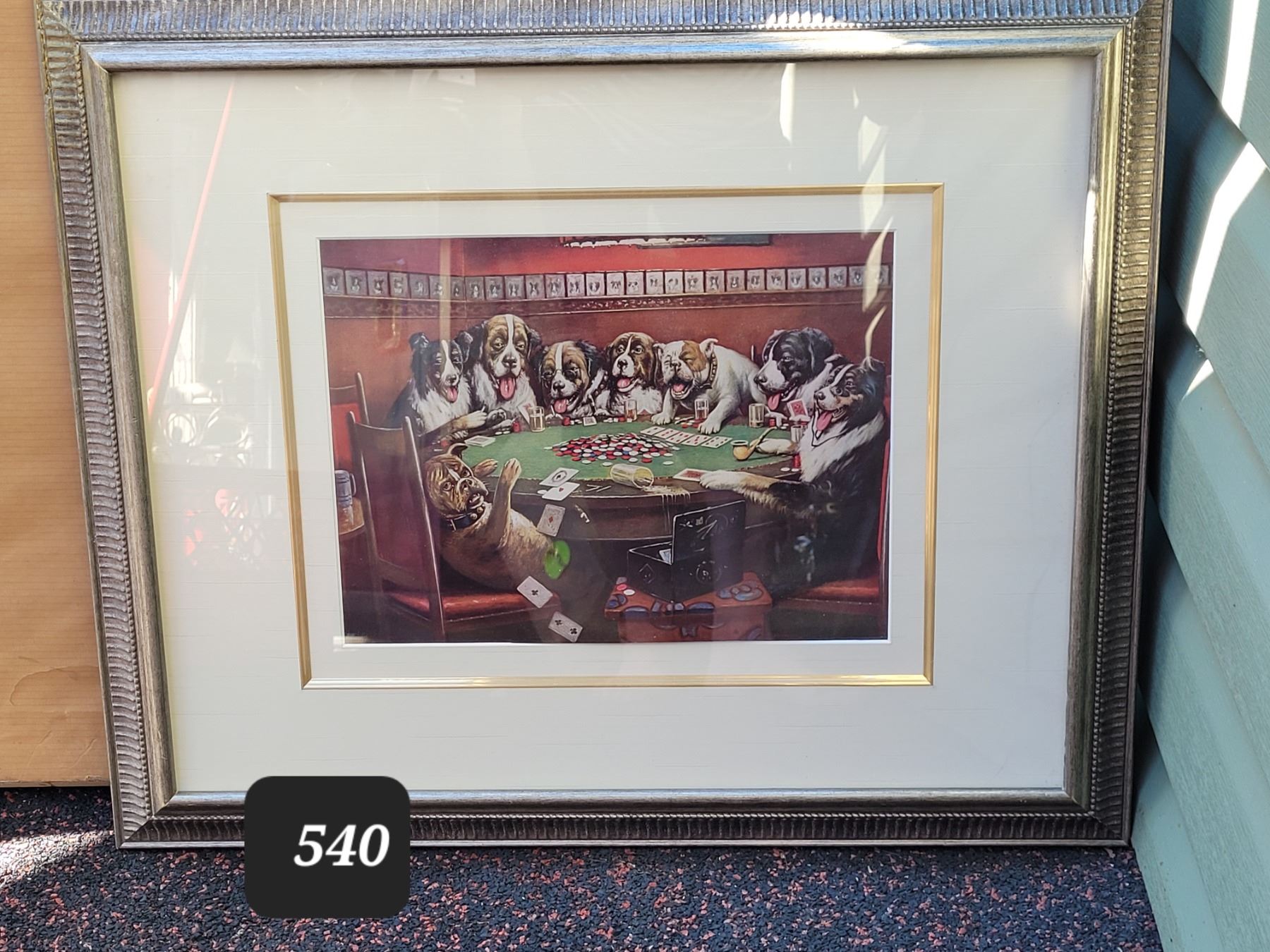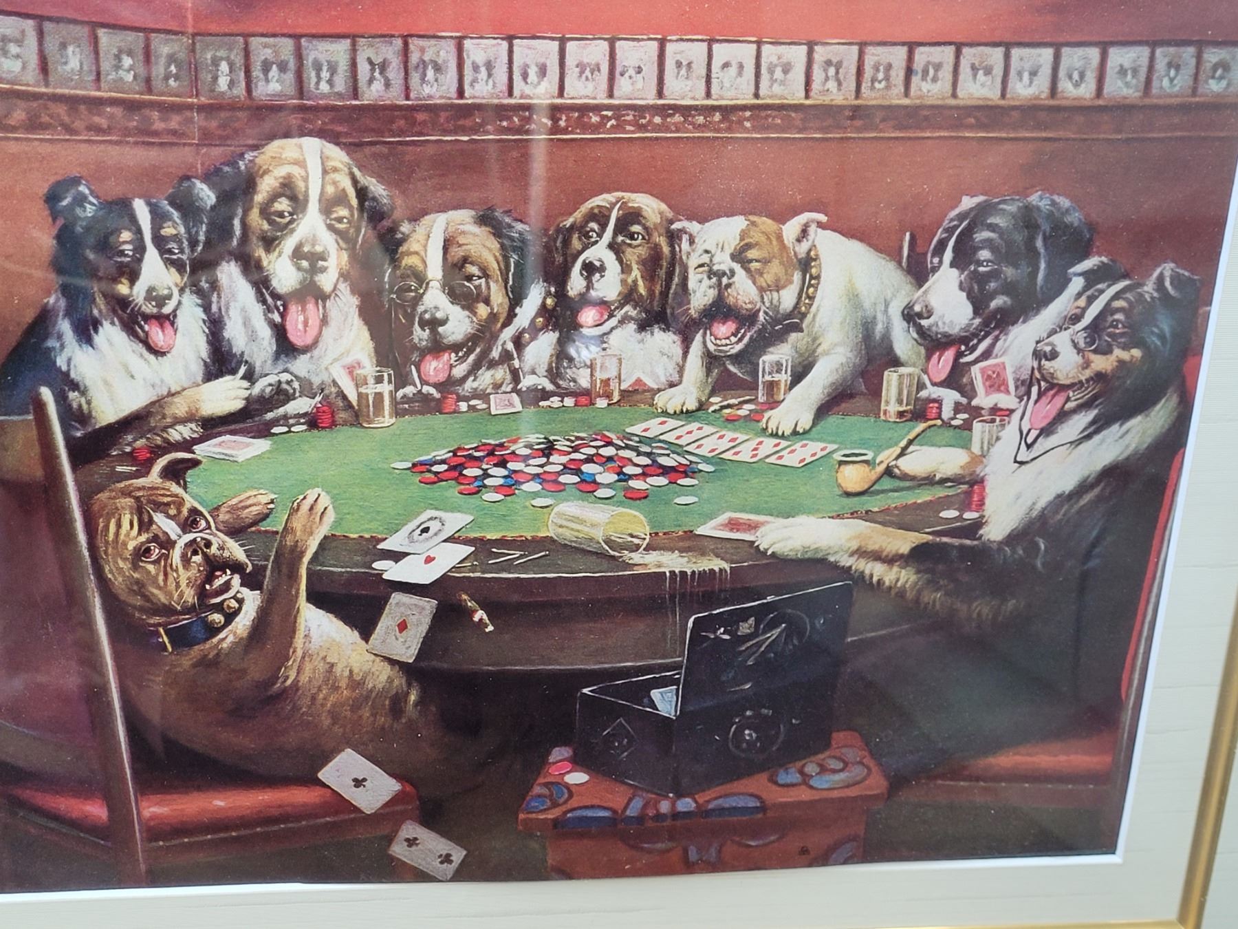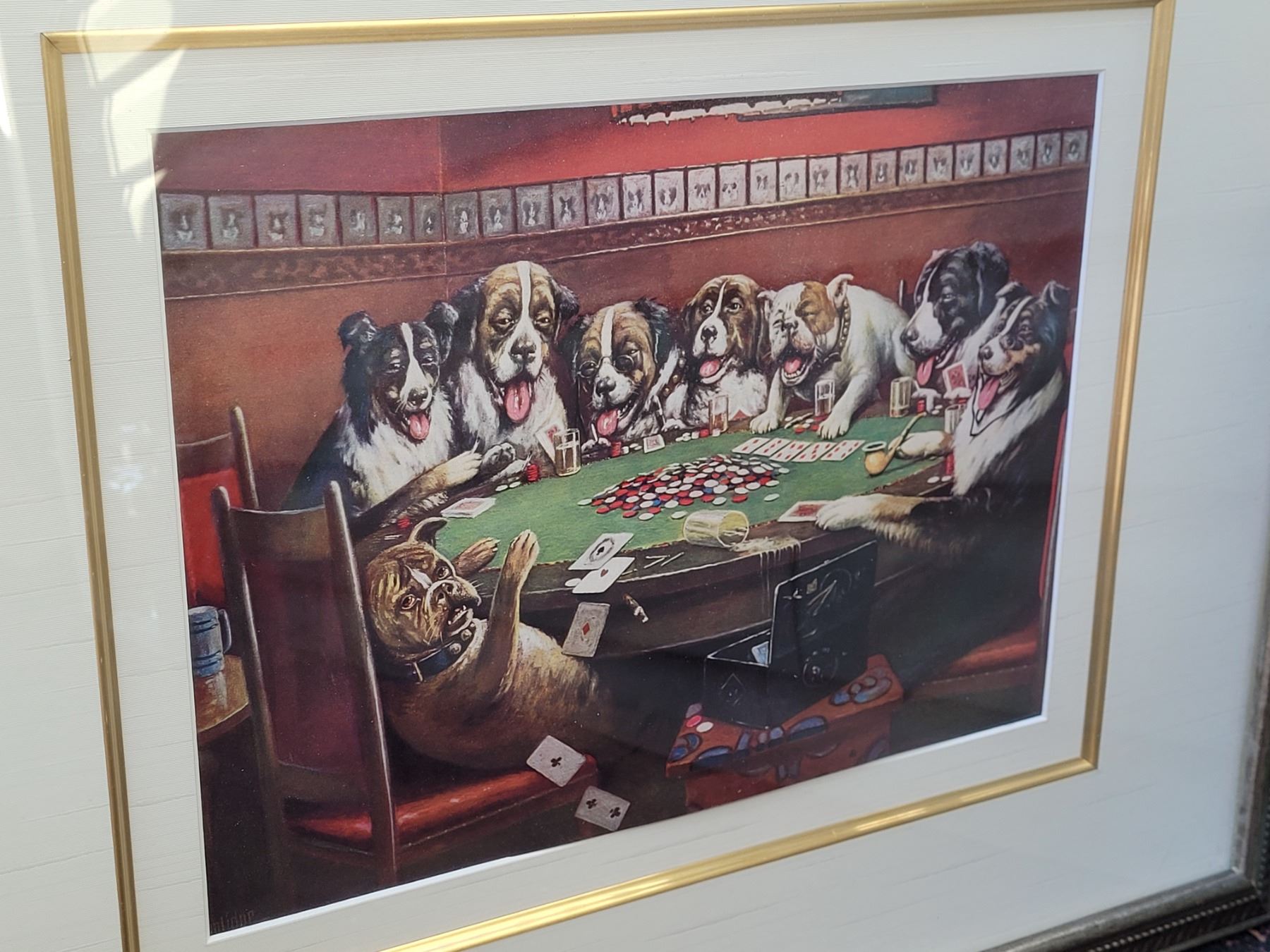 Vintage Dogs playing poker “Poker Sympathy” framed & matted print. By CM Coolidge 19X23