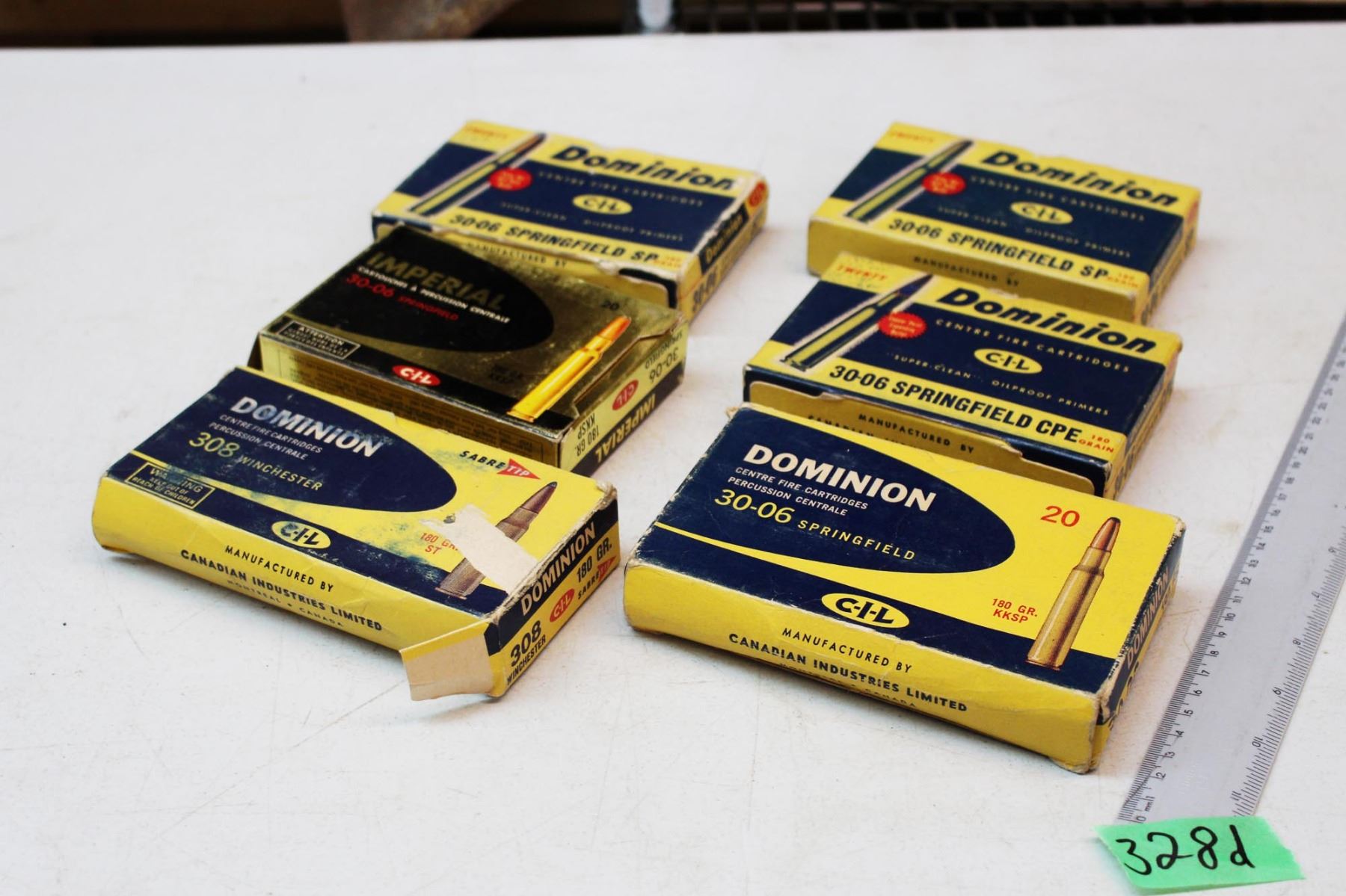 Vintage Dominion Ammo Boxes (5), 1 Imperial Ammo Box