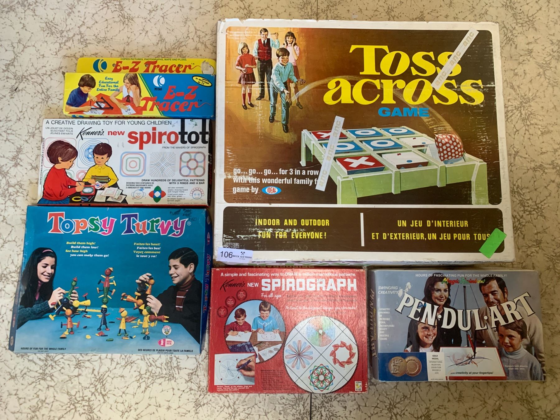 Vintage Drawing Activity Type Games and Toss Across Game Lot