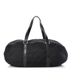This duffle tote is crafted of black canvas with a bold Damier squared brand logo.