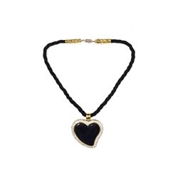 Style: Yves Saint Laurent Vintage Black Enamel Heart W/ Rhinestones 18" Rope Necklace