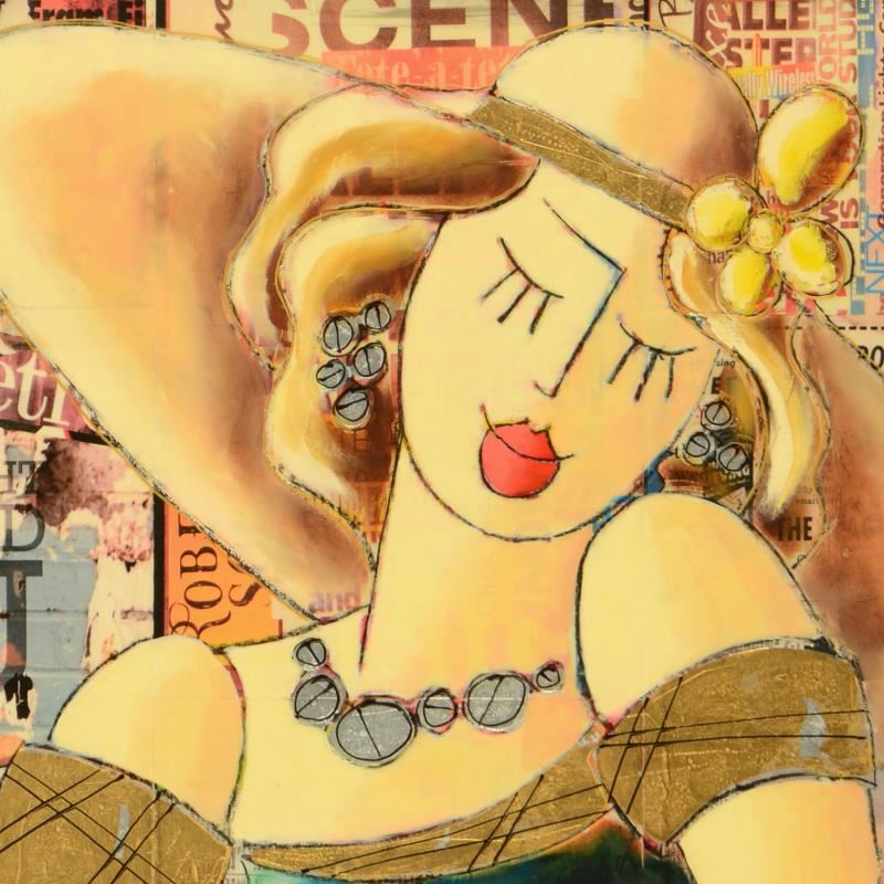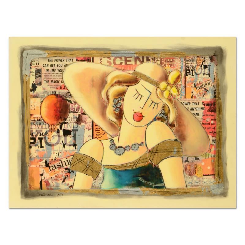 "Vintage Dreams (v5)" is an original mixed media on board. The piece is hand signed by the artist and come with a Certificate of Authenticity. Measures approximately 29" x 21.5" (image). There are minor scratches along the corners and edges of the border area that may be concealed when framed.