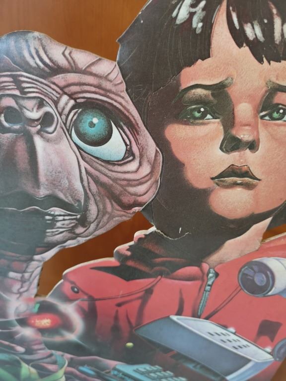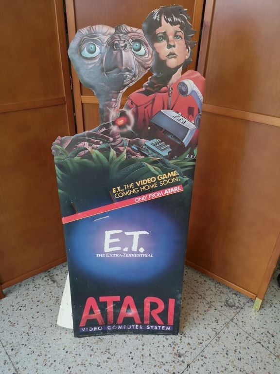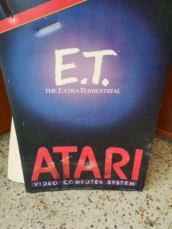 This fantastic piece comes to you in fair pre-owned condition with scuffs, marks and water damage to the bottom of it, tear by the neck of Elliott, will see in photos. Still able to stand on its own. Approximate measurements are 45 in tall and 16.75 in wide. 1982 Atari Inc. E.T. video game store display.