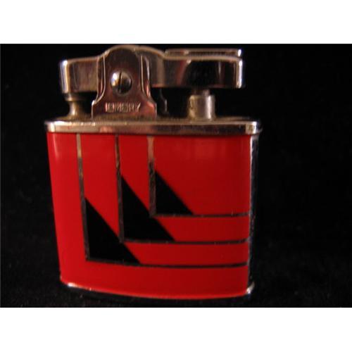 Gorgeous vintage lighter by Emery, Japan. It has a red and black enamel deco-style pattern on the front, and plain red enamel on the back. The enamel is in excellent condition, showing fine scritches from use and one deeper, very small scratch on the back. There are very fine scritches from use on the silver surfaces (see photo) The mechanical parts work. I am selling more vintage lighters, so please check them out!