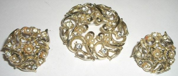 Vintage Earrings & Pin Rhinestone & Pearl Set ***Coin, Currency & All Items Listed in this auction - Grades, Conditions and Values are not Safe Deposit Coins LLC Responsibility. Grades, Condition and Values are determined by Consigner(s) & Buyers
