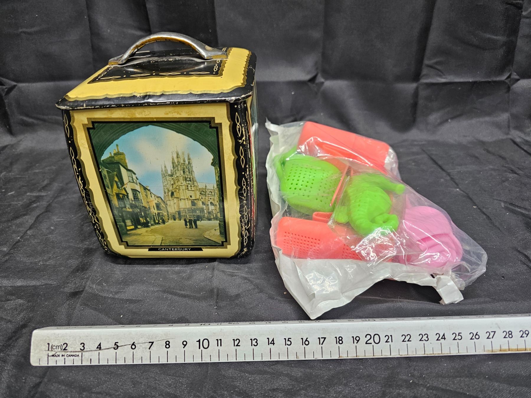 Vintage Edward Sharp Biscuit/Tea Tin and Assorted Tea Infusers