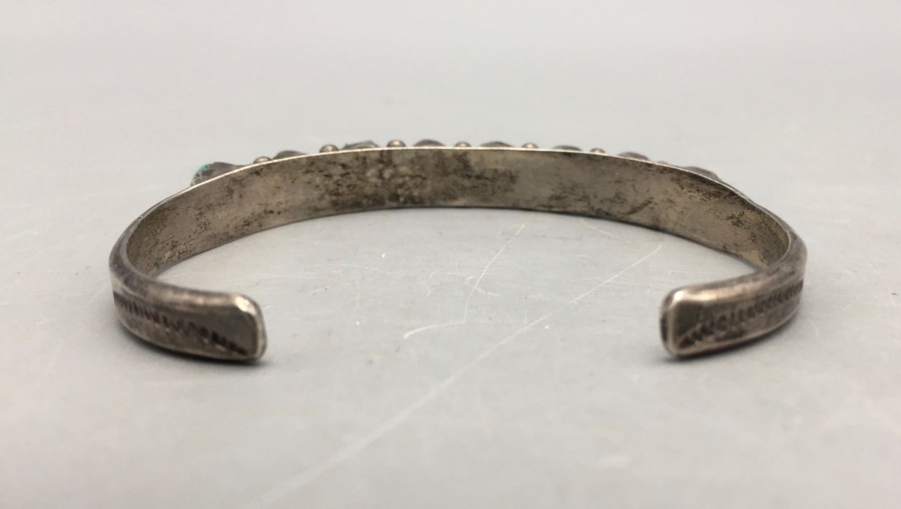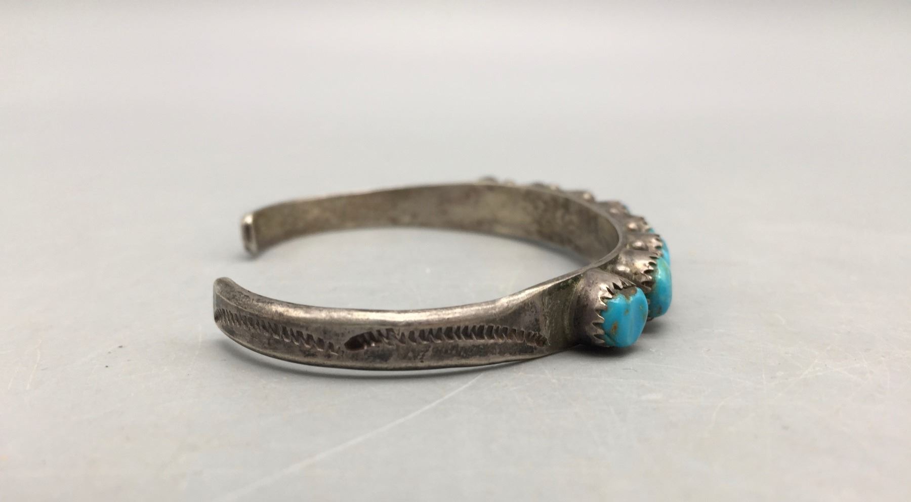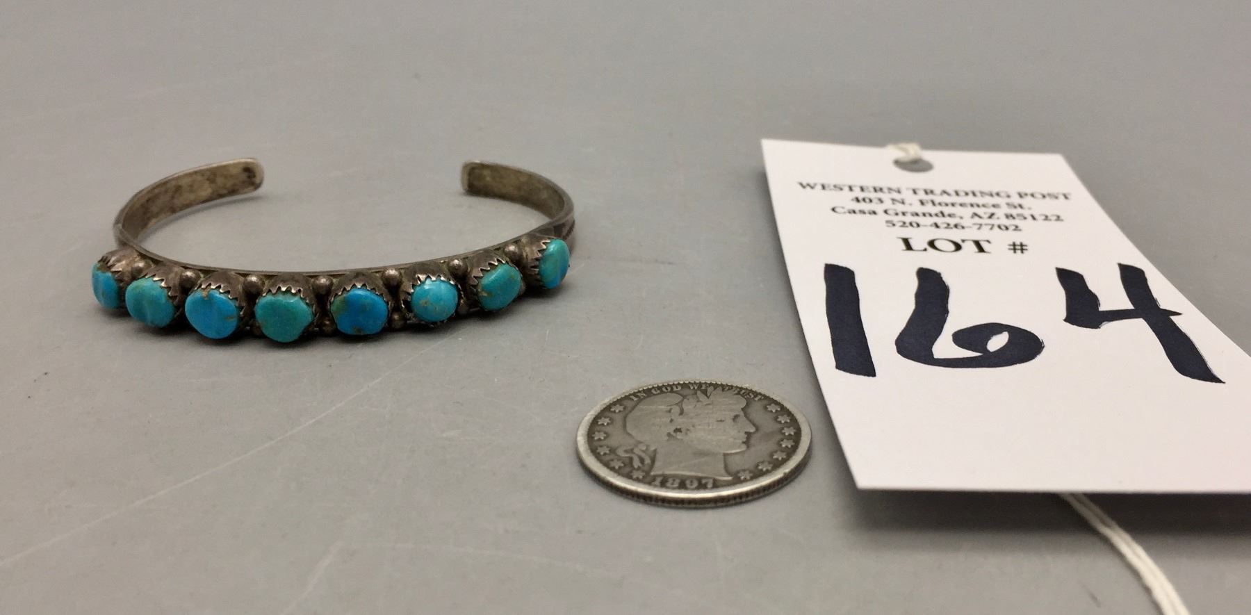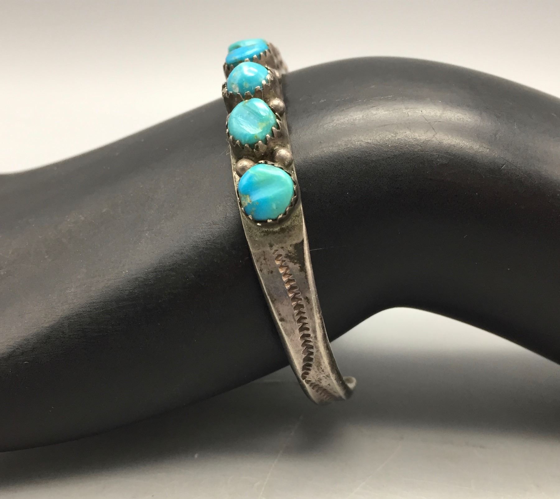 Description: For your consideration we offer this vintage, eight stone, carved turquoise and sterling silver cuff bracelet.