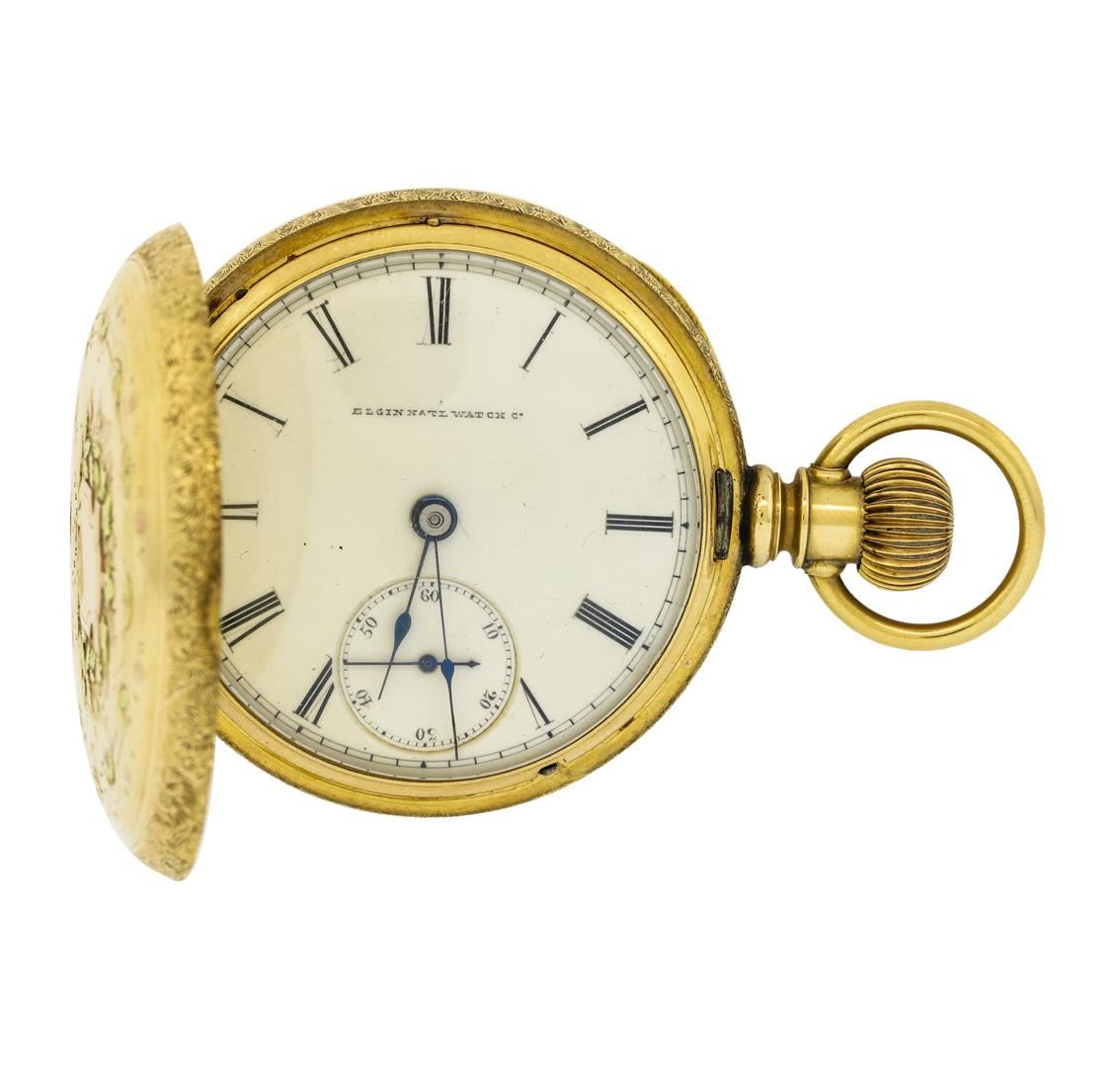 One Elgin G.M. Wheeler vintage 14KT Two Tone Gold Pocketwatch. Made in 1883, 15 Jewels, 1 of 4,000. Total Weight of Watch: 135.6.