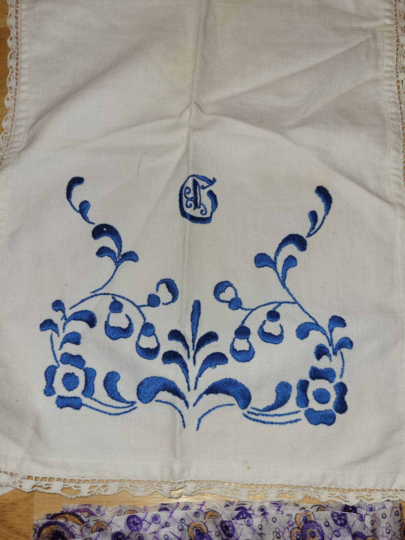 Vintage Embroidered Baby Bib & Silk Hankercheif