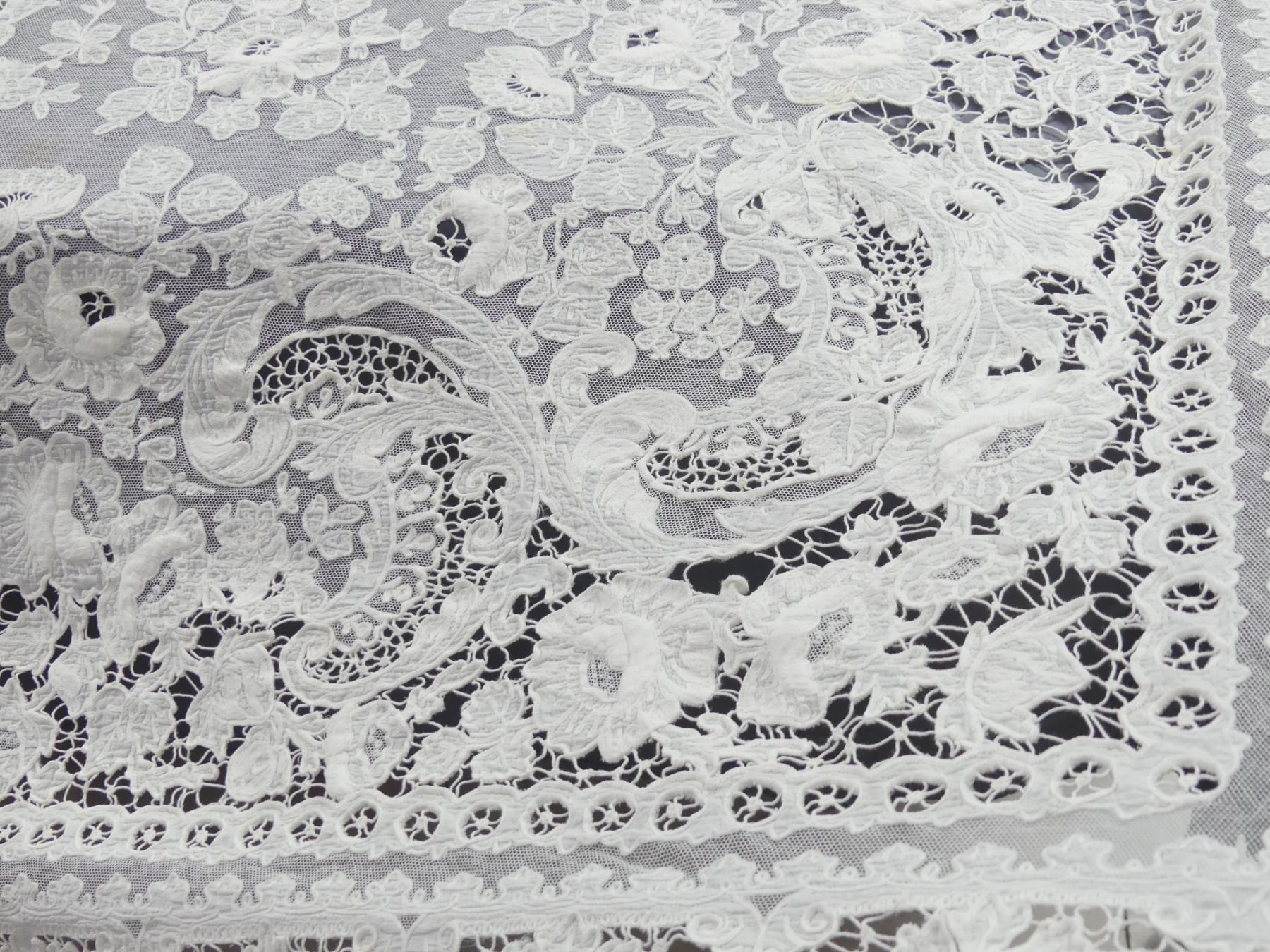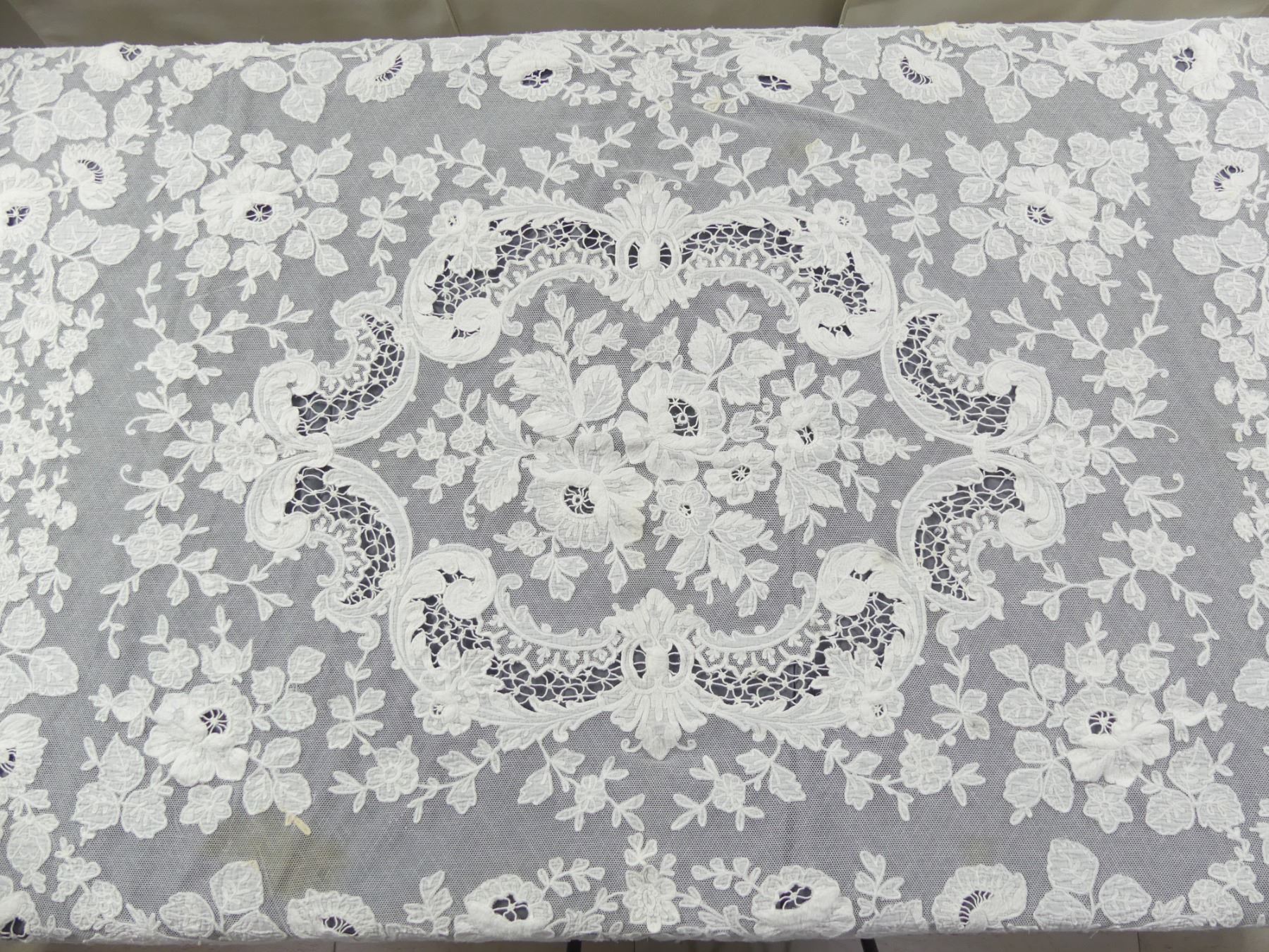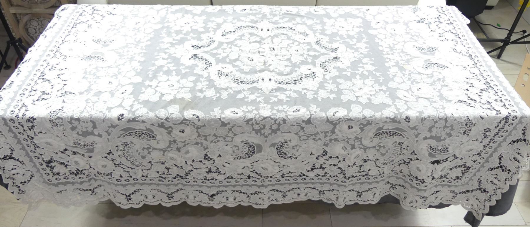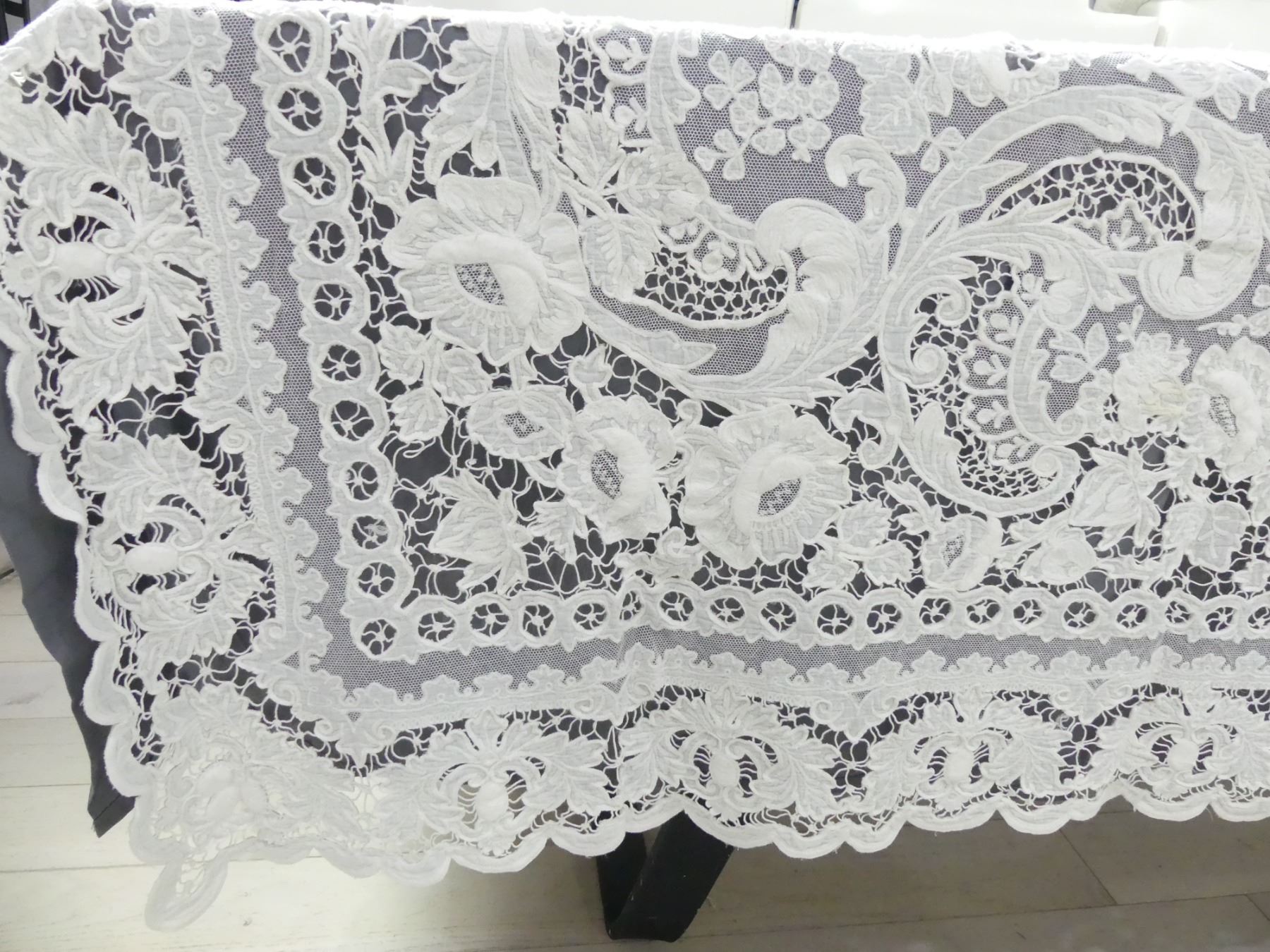 Vintage Embroidered Lace & Net Dinning Tablecloth