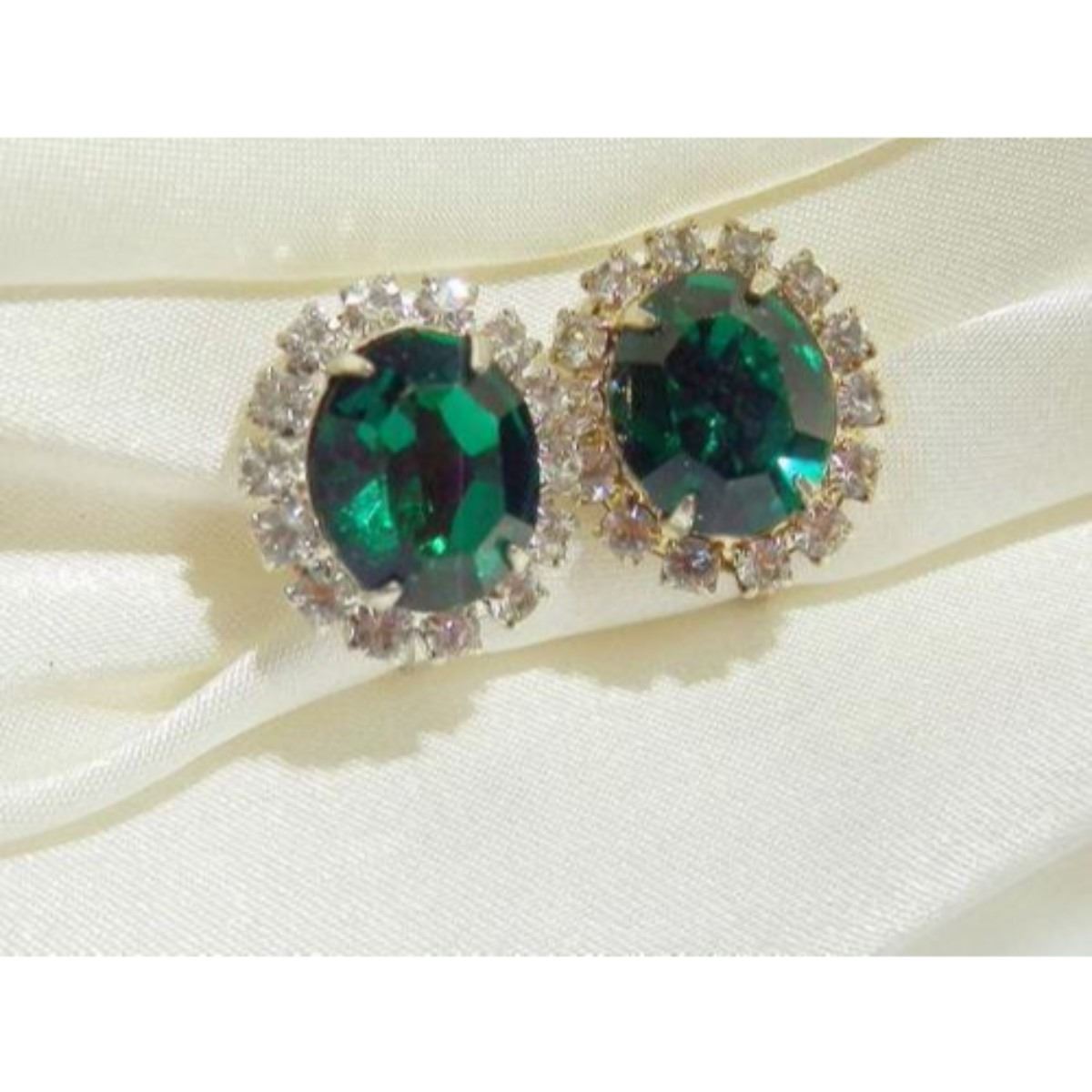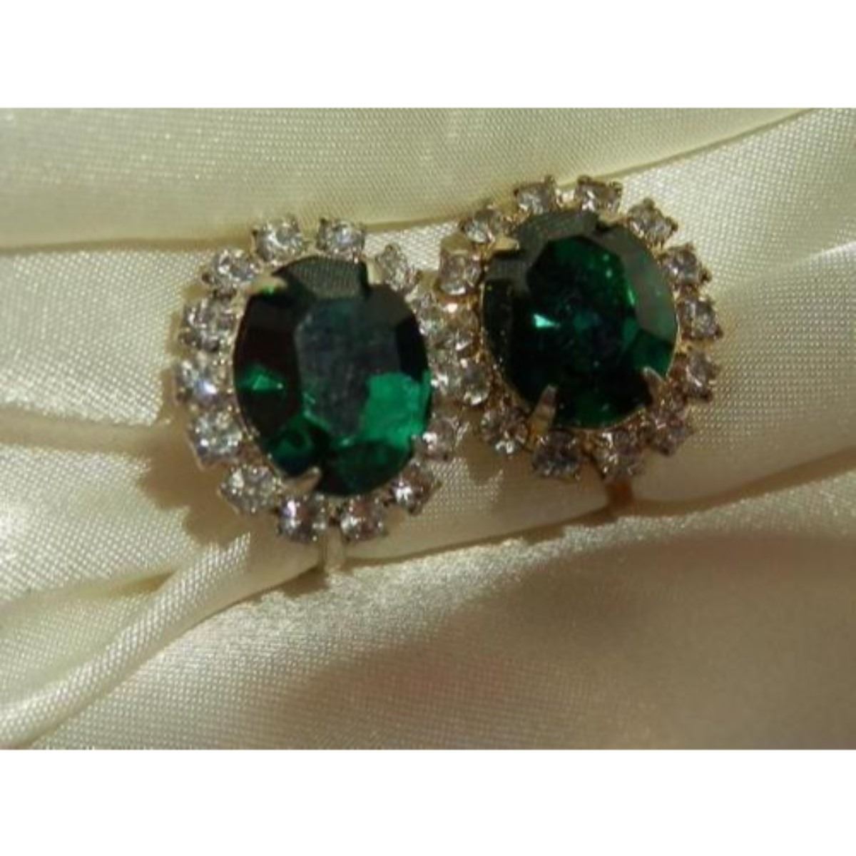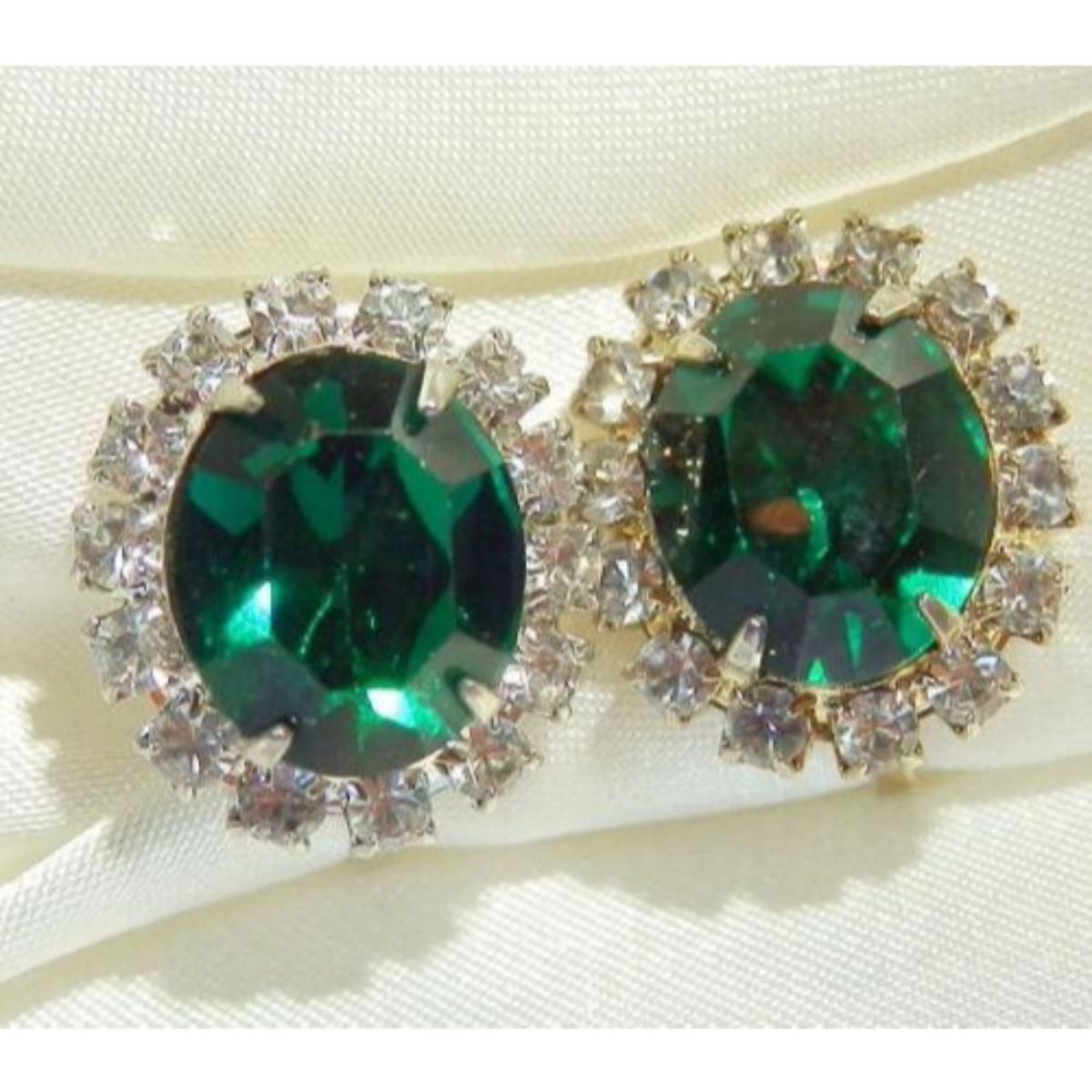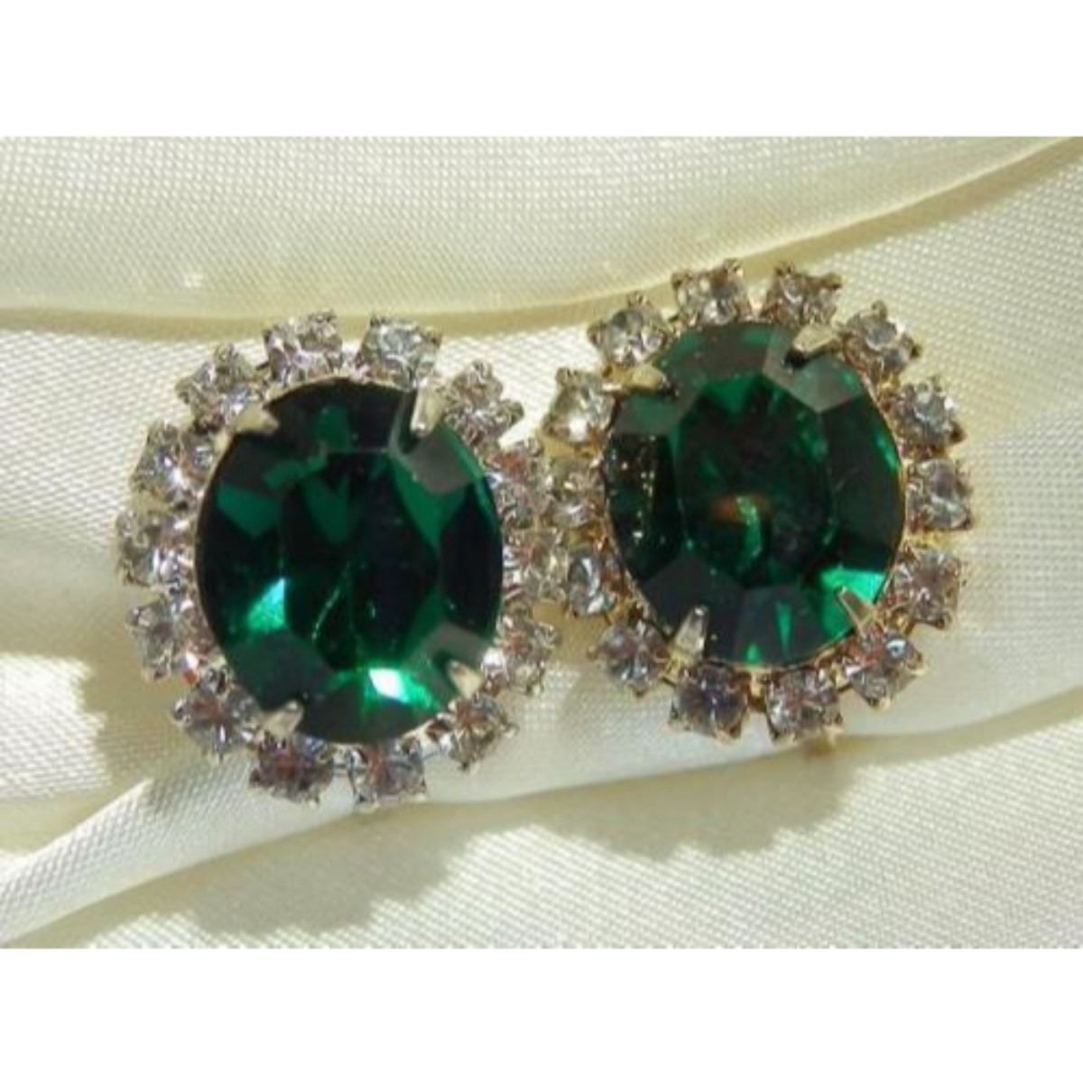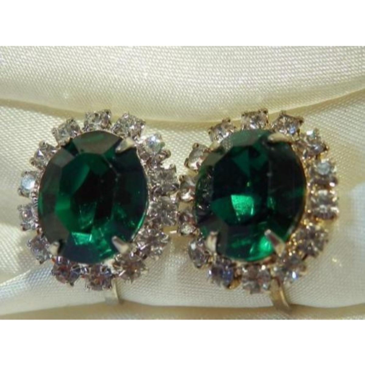 Vintage 1970's emerald green prong set rhinestone screw back earrings. 10669-052918-EB-33147