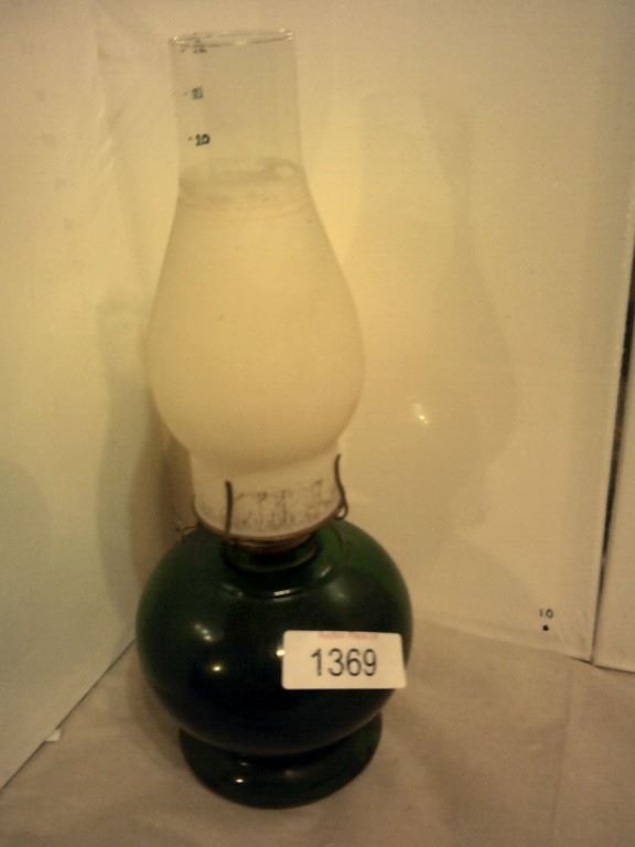 Vintage Emerald base oil lamp with frosted globe