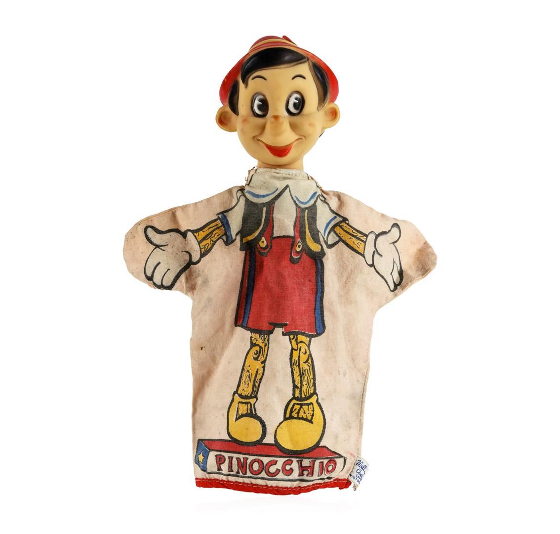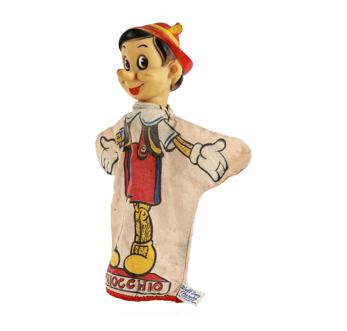 You are viewing an AUTHENTIC VINTAGE DISNEY Hand PUPPET Pinocchio which is a Walt Disney Character made by GUND MANUFACTURING in Hong Kong. His head is of plastic material and the body is made of painted Cloth material from the Manufacturer. Pinocchio Hand Puppet is in great condition.