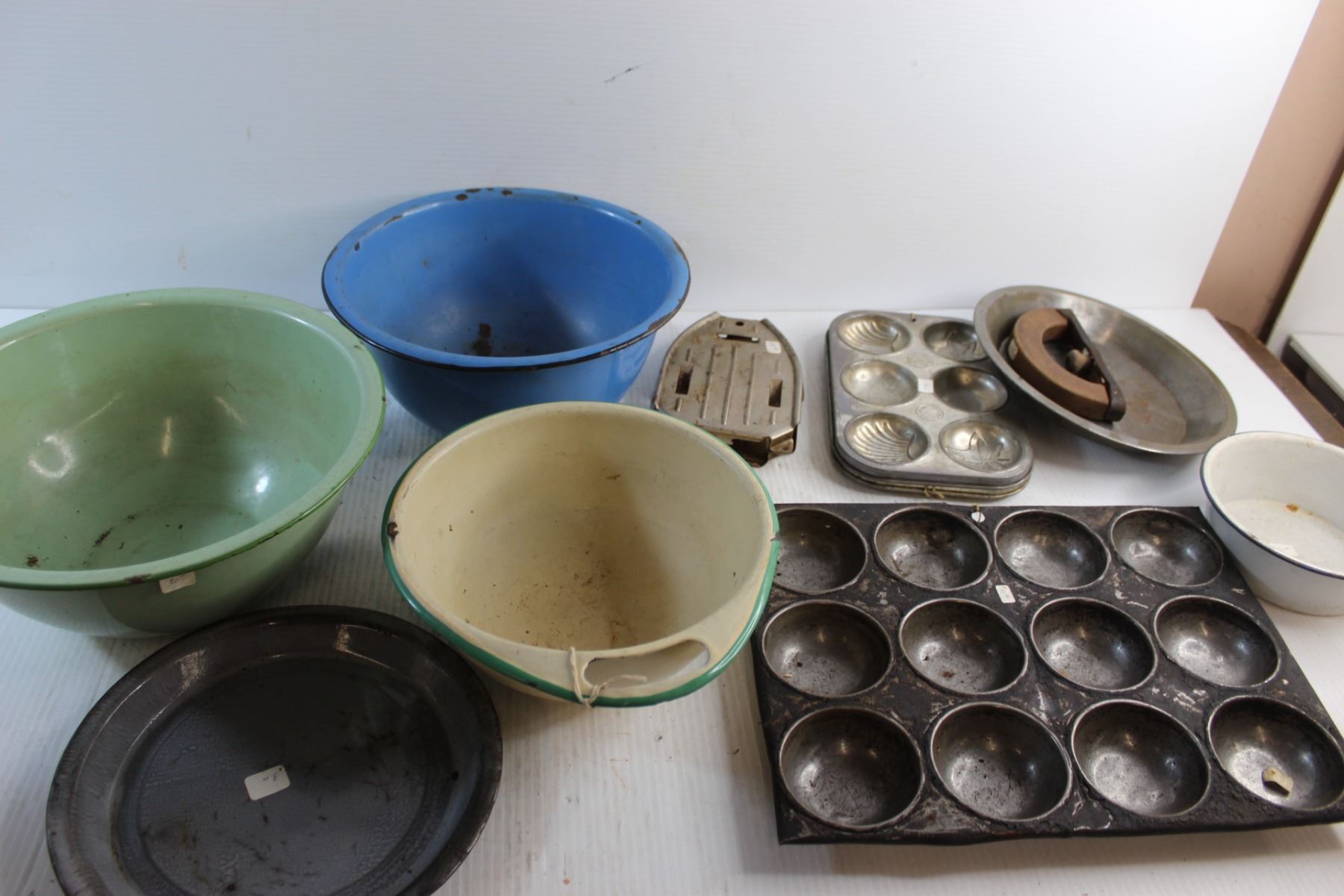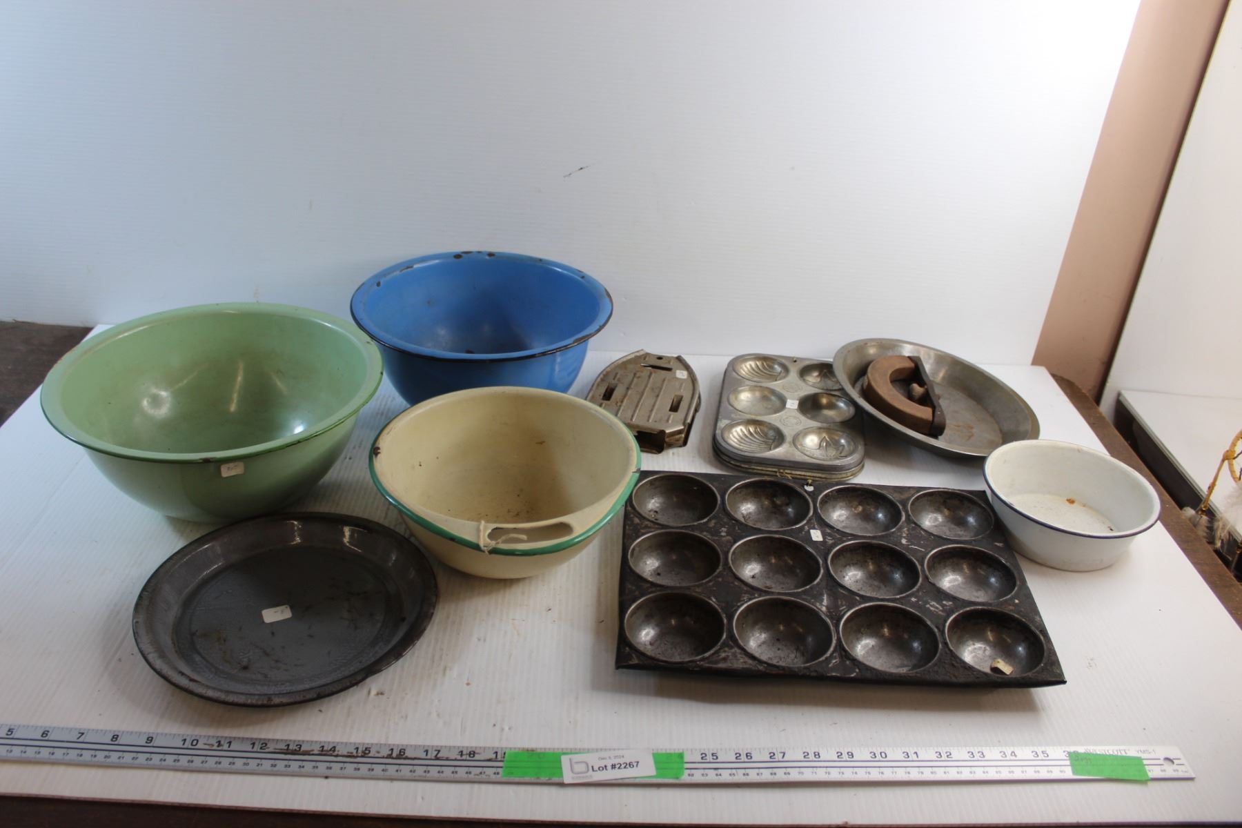 Vintage Enamel Bowls, Baking Molds and Misc.