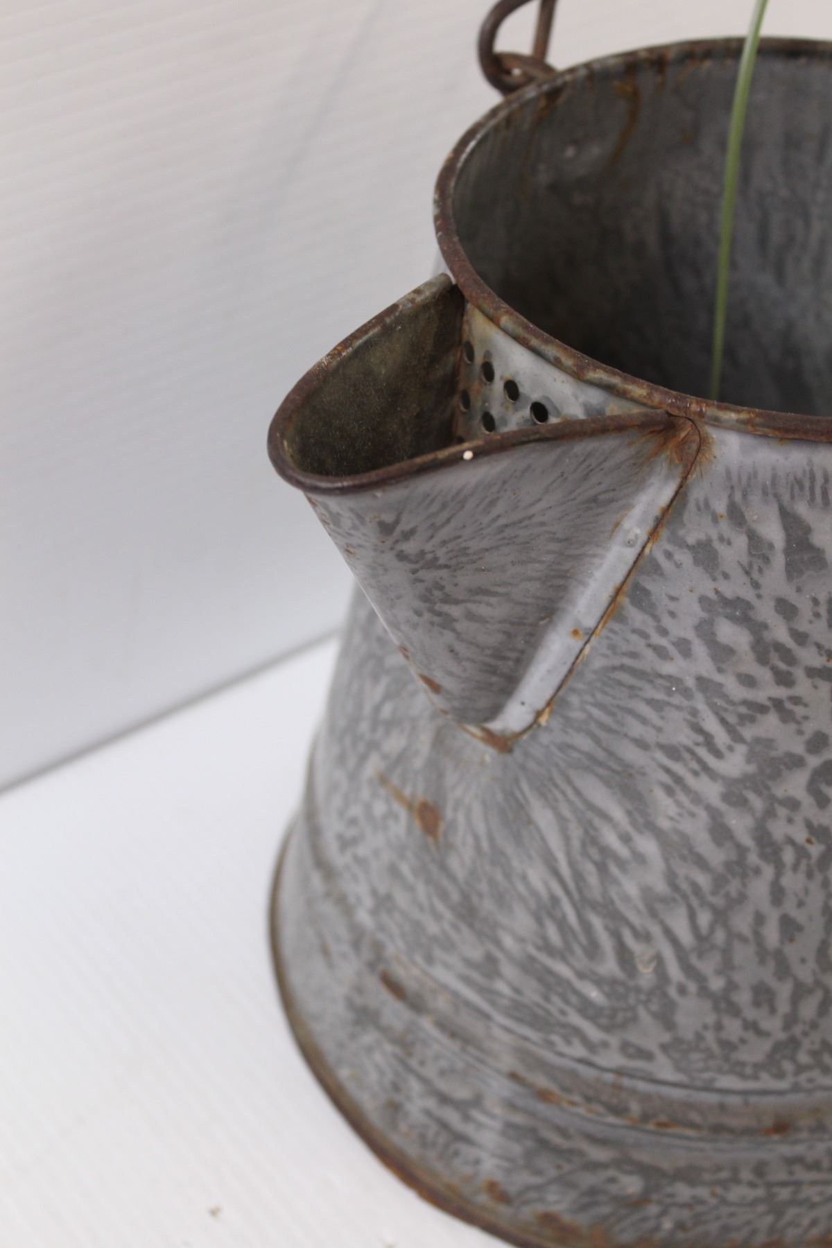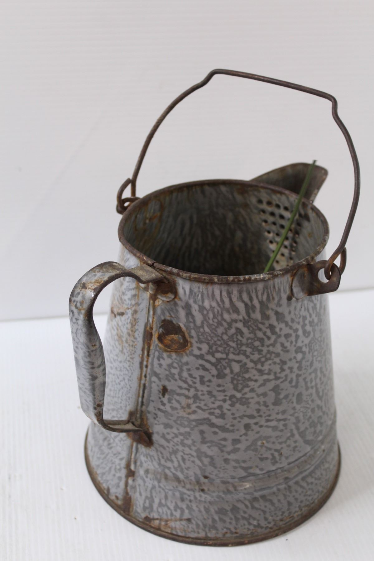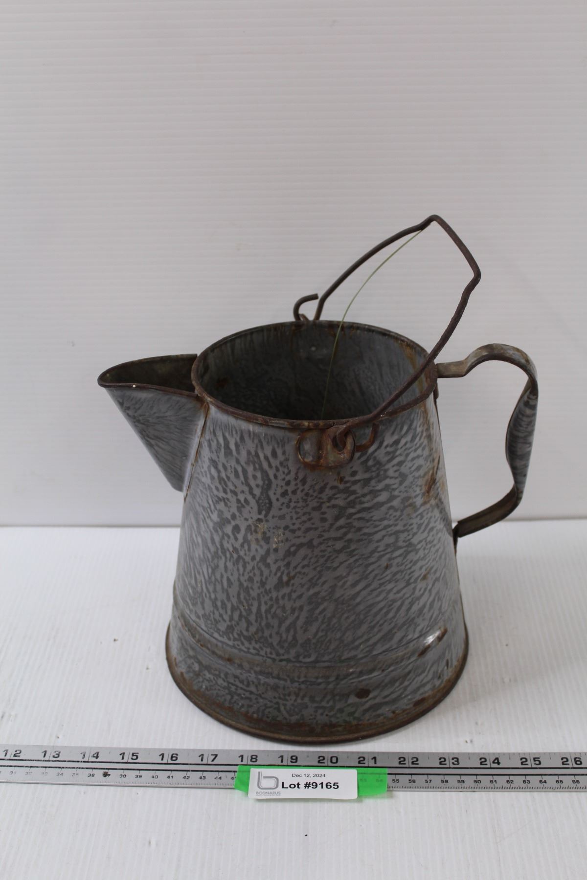 Vintage Enamel Graniteware Cowboy Coffee Pot - Some Wear - 9" Tall