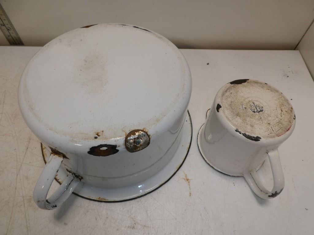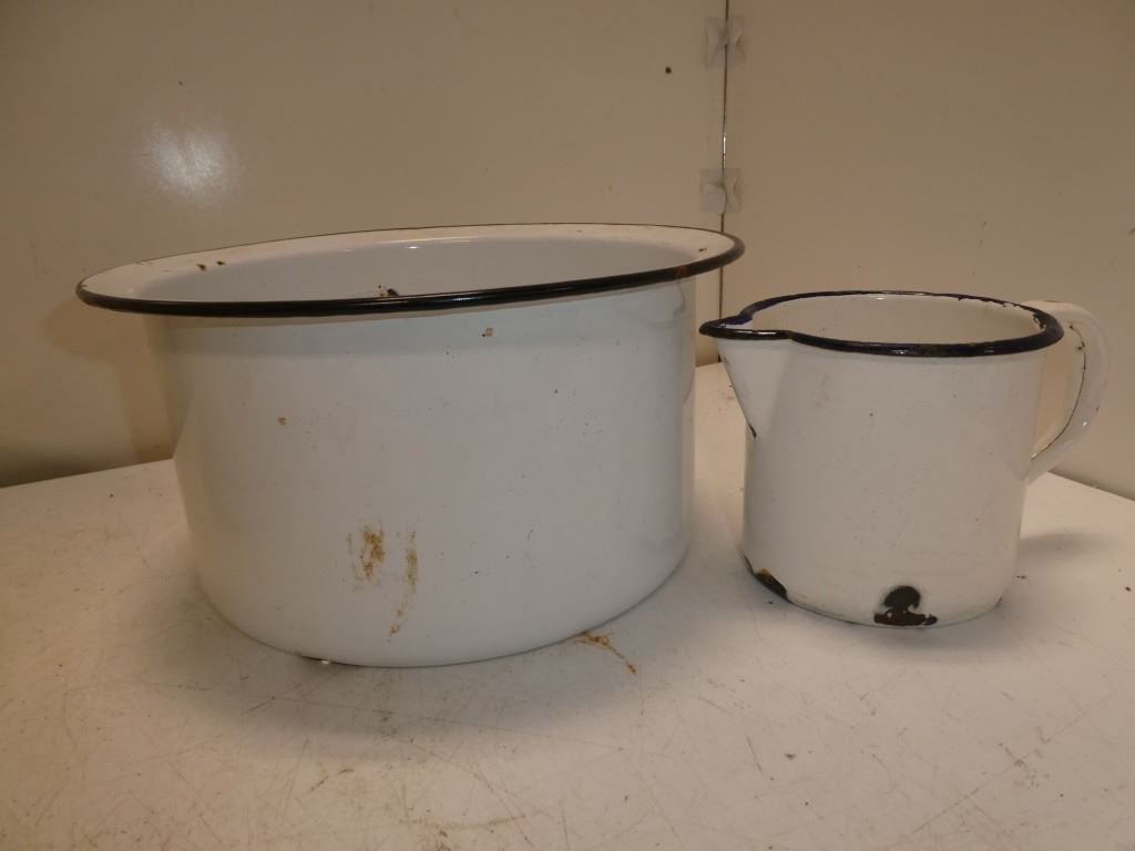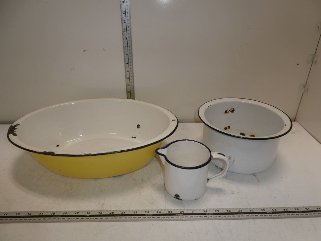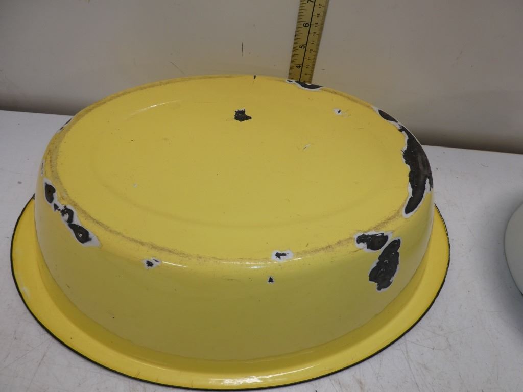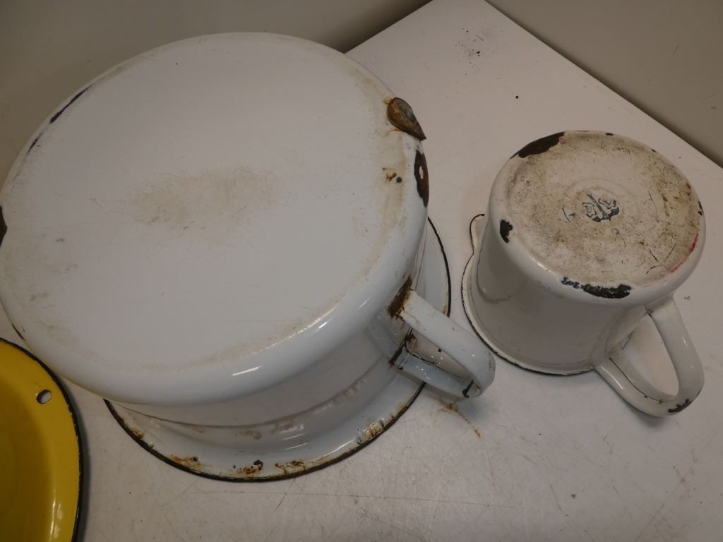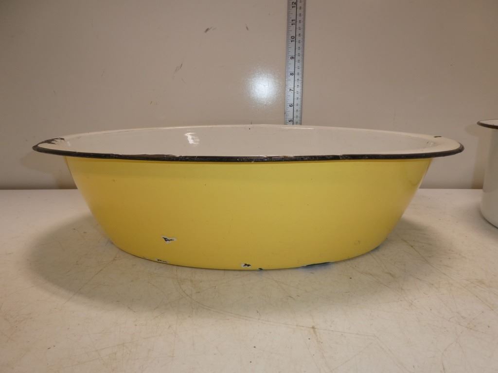 Vintage Enamel Ware, Large Yellow Bowl, Jug and