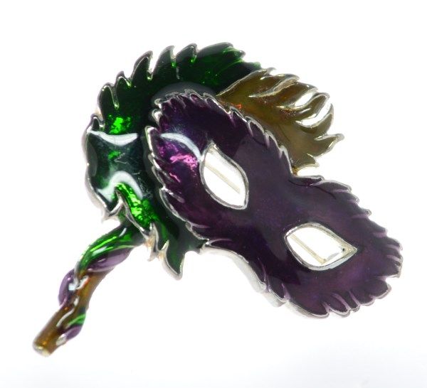 Vintage Enameled Mardi Gra Pendant/Pin, Excellent Condition 1 3/4" long