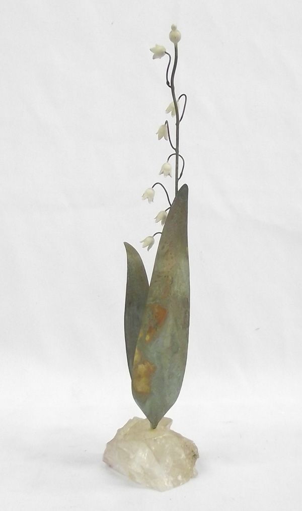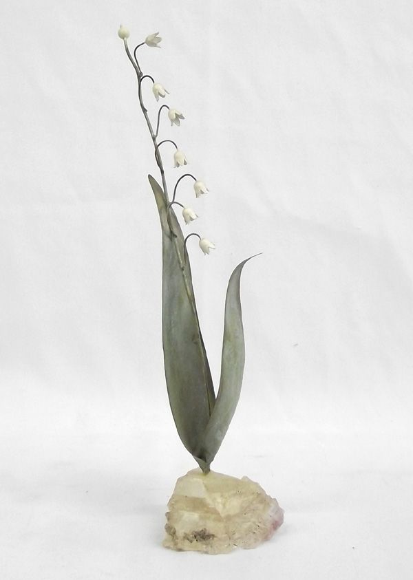 Vintage Enamelware Lily of the Valley Sculpture on Quartz base, measures approx. 12''H and base is 3'' x .5'' x 2''