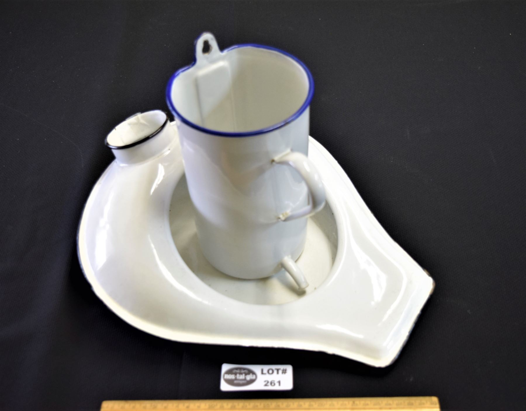 1930s Kockums Sweden Blue/White Colonic Irrigatoar and Unmarked Black/ White Bedpan/Urinal